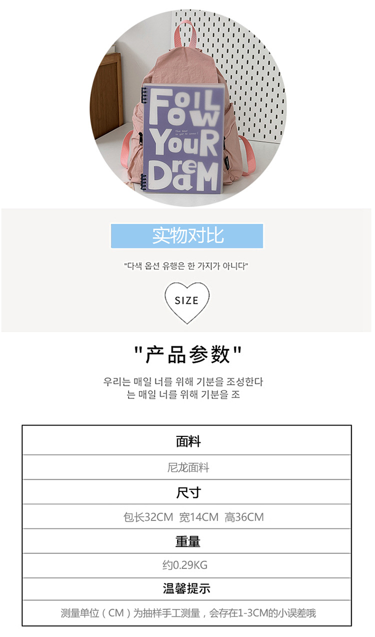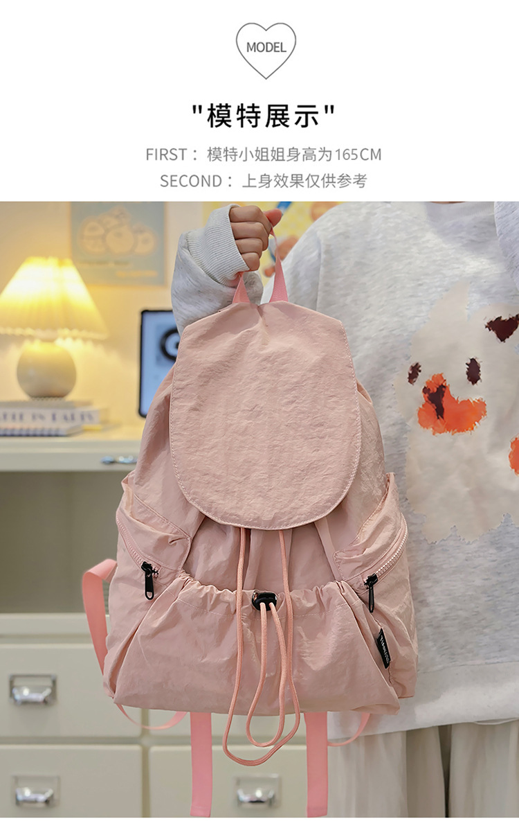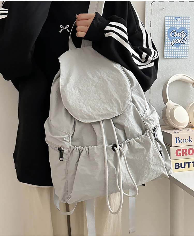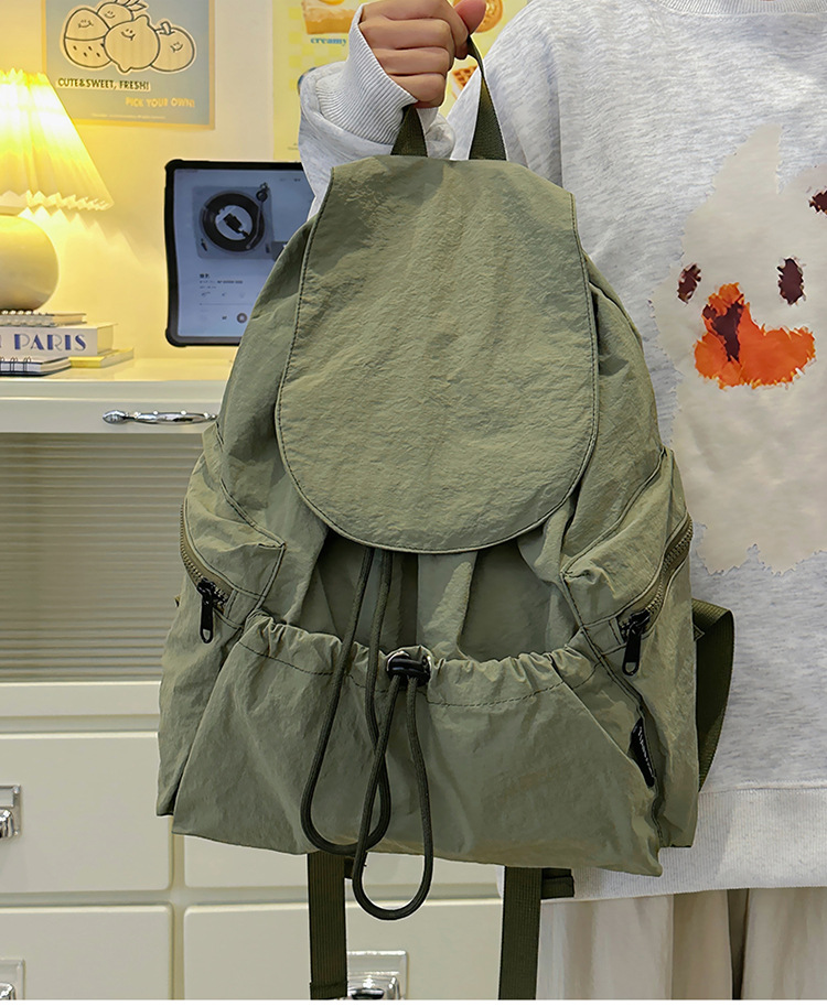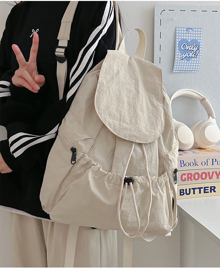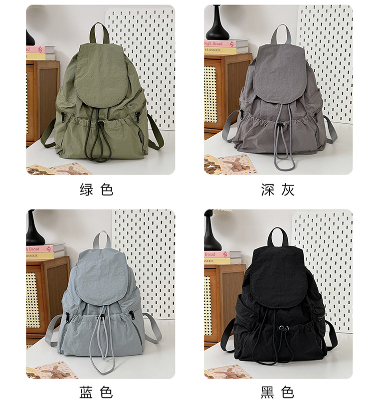 새로운 한국 틈새 경량 나일론 원단 배낭 소녀 캐주얼 패션 드로스트링 여행 대용량 배낭