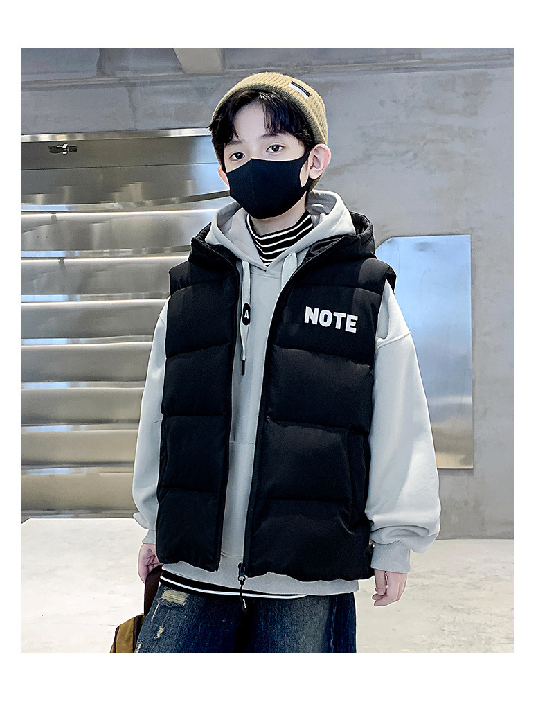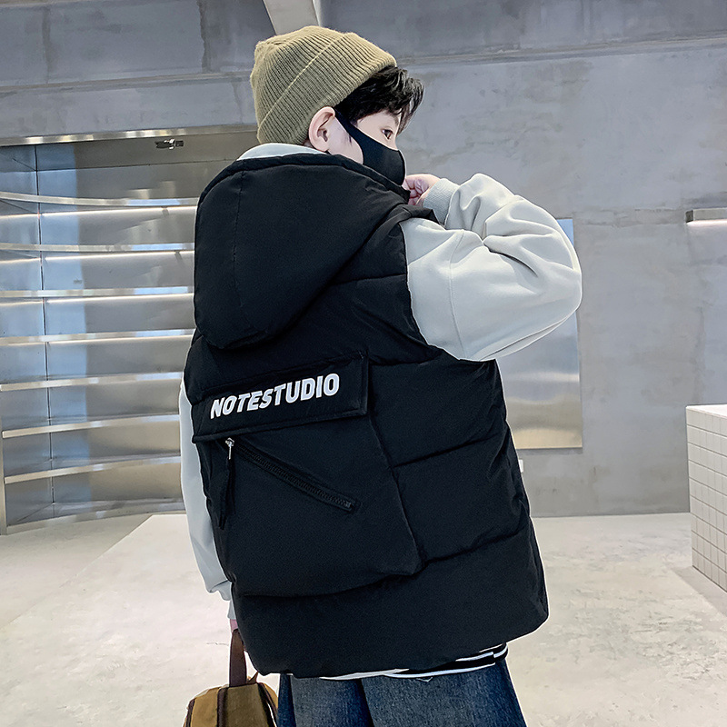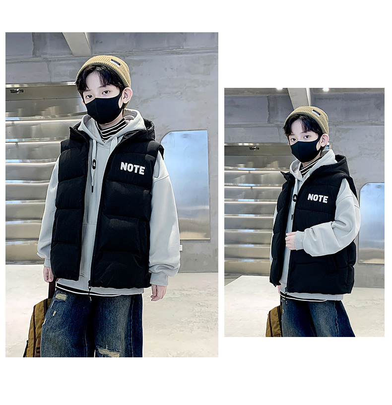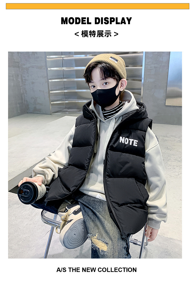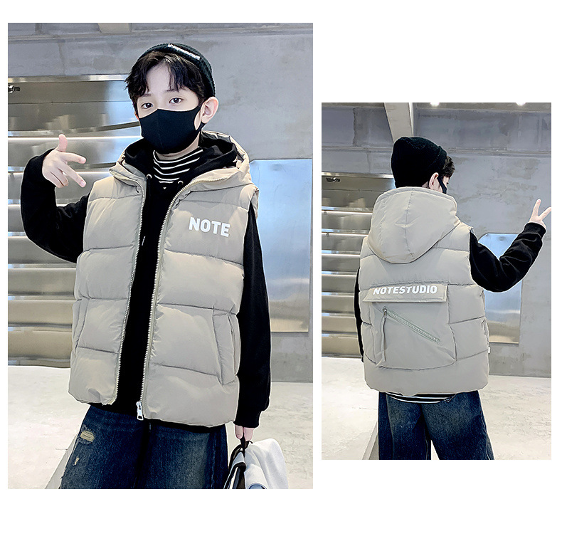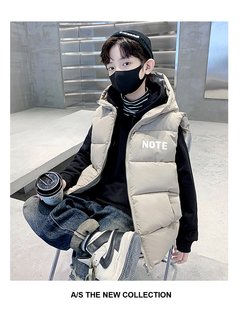 소년 면 조끼 2024 년 봄과 가을 새로운 가을과 겨울 큰 어린이와 소년 스타일 다운 조끼 웨이스트 코트스토어 가기