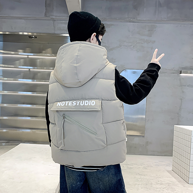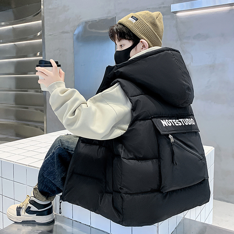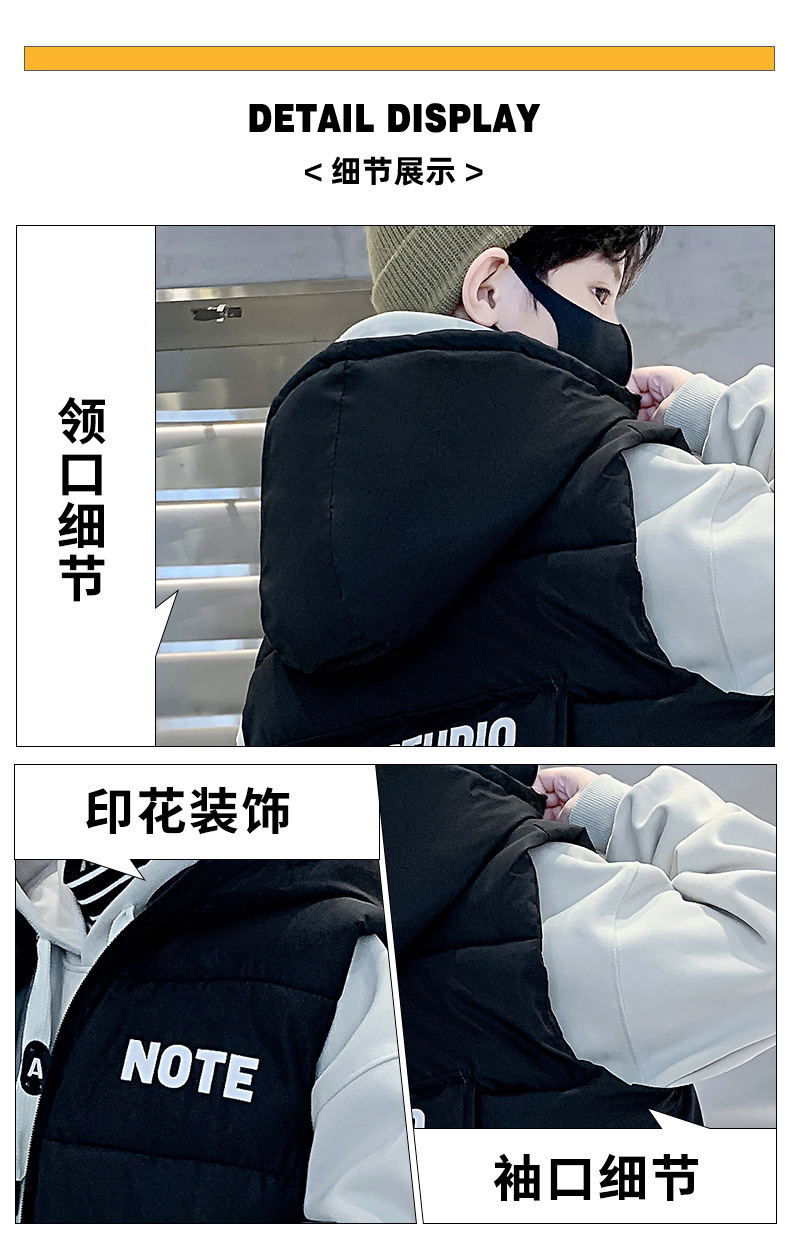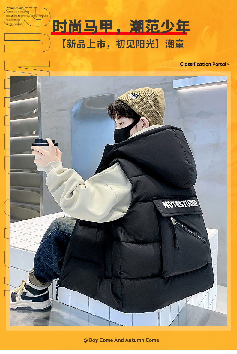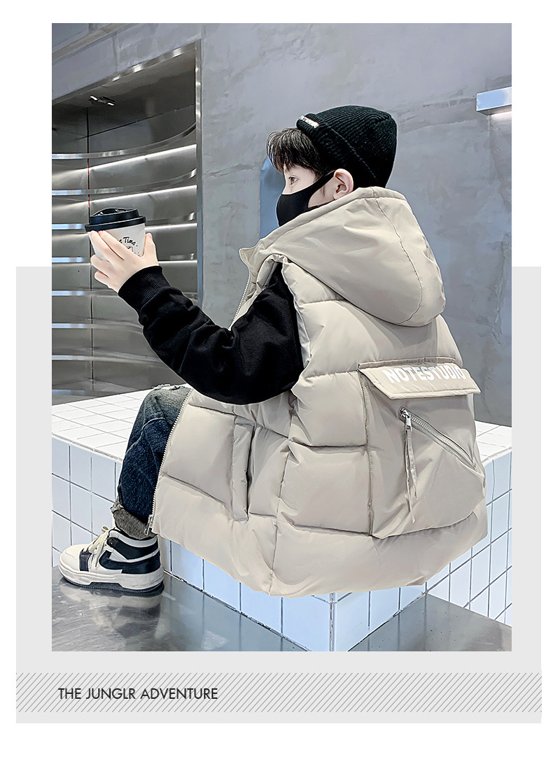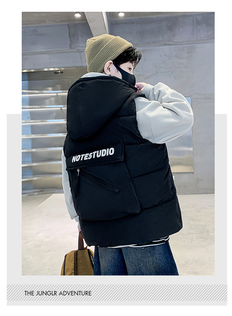 소년 면 조끼 2024 년 봄과 가을 새로운 가을과 겨울 큰 어린이와 소년 스타일 다운 조끼 웨이스트 코트스토어 가기