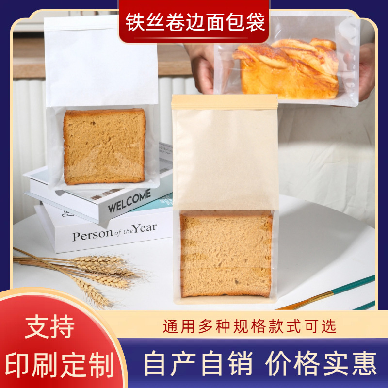 토스트 백 빵 가방 포장 베이킹 크래프트 종이 가방 포장 와이어 컬링 흰색면 테이크 아웃 창 오일 방지 스낵스토어 가기