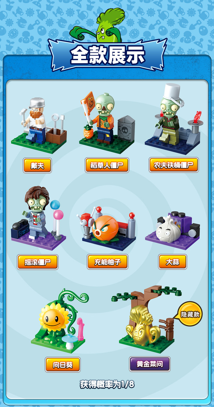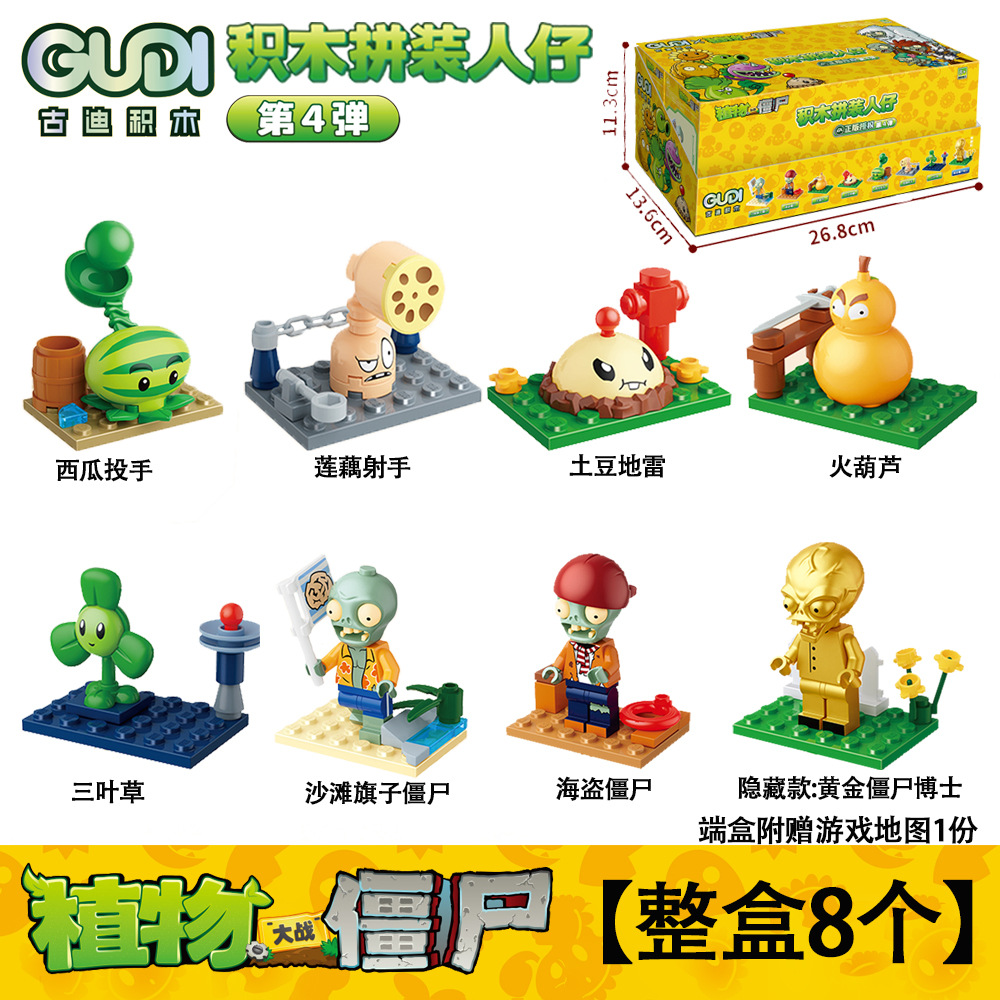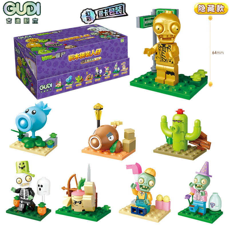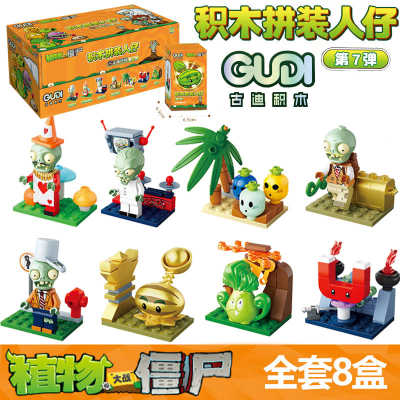 구디 식물 대 좀비 빌딩 블록 조립 사람들이 모형 소년 작은 입자 조립 장난감 60032