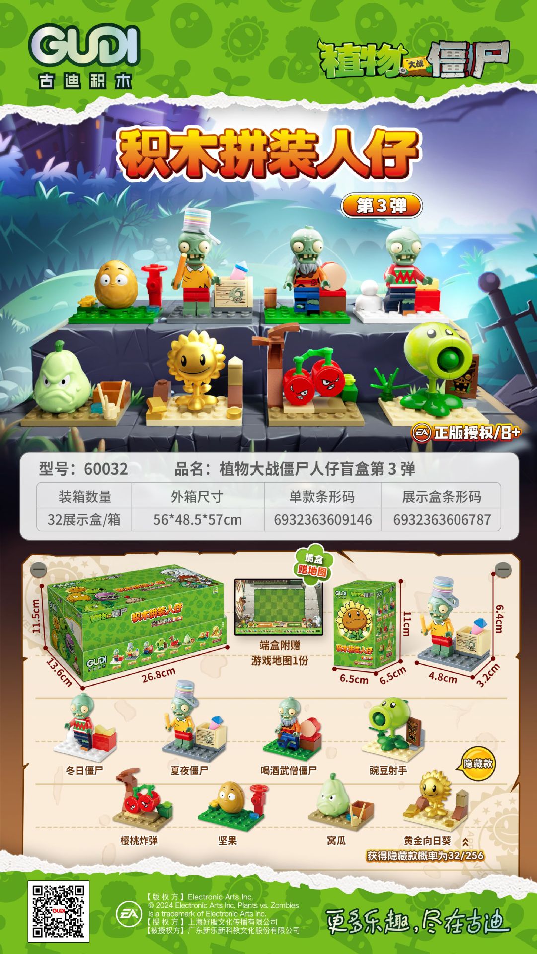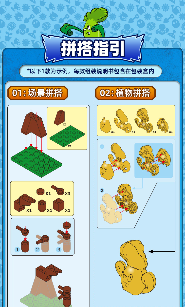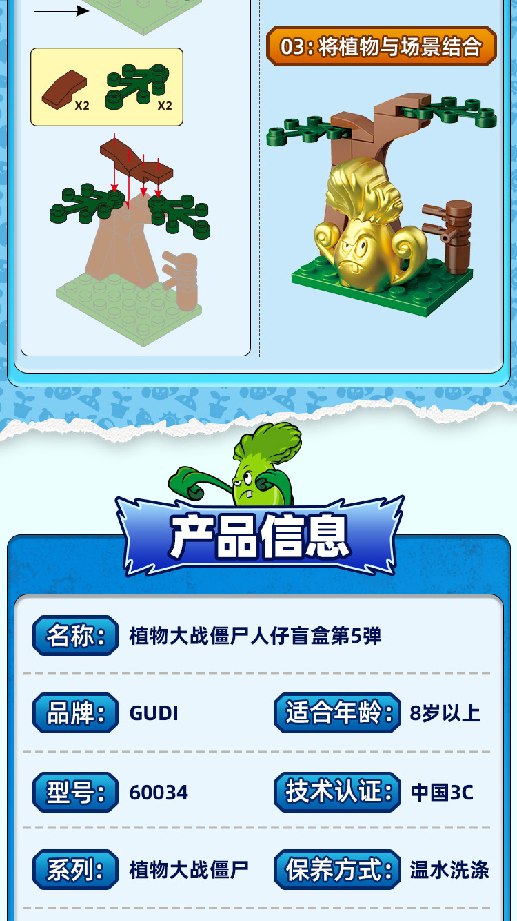 구디 식물 대 좀비 빌딩 블록 조립 사람들이 모형 소년 작은 입자 조립 장난감 60032