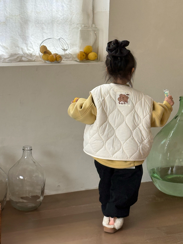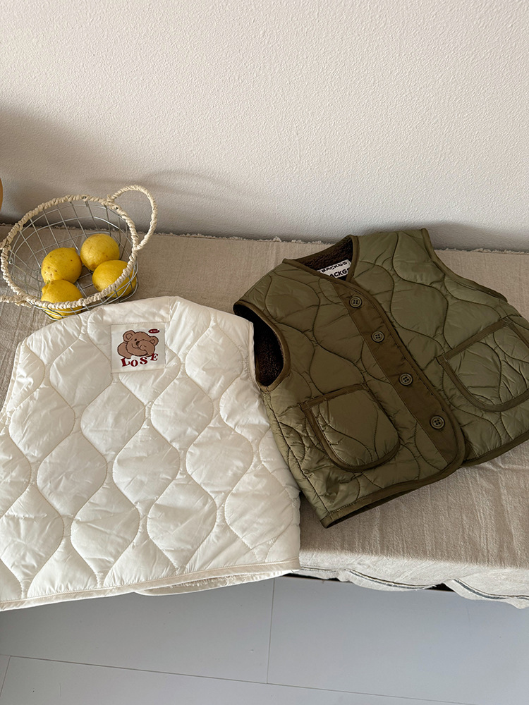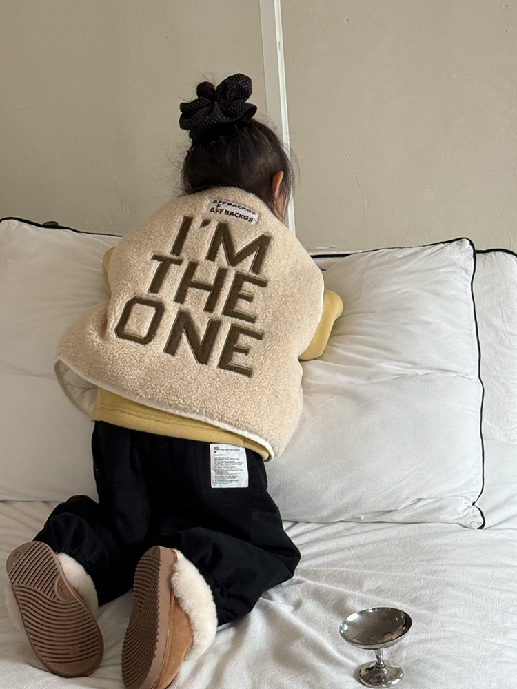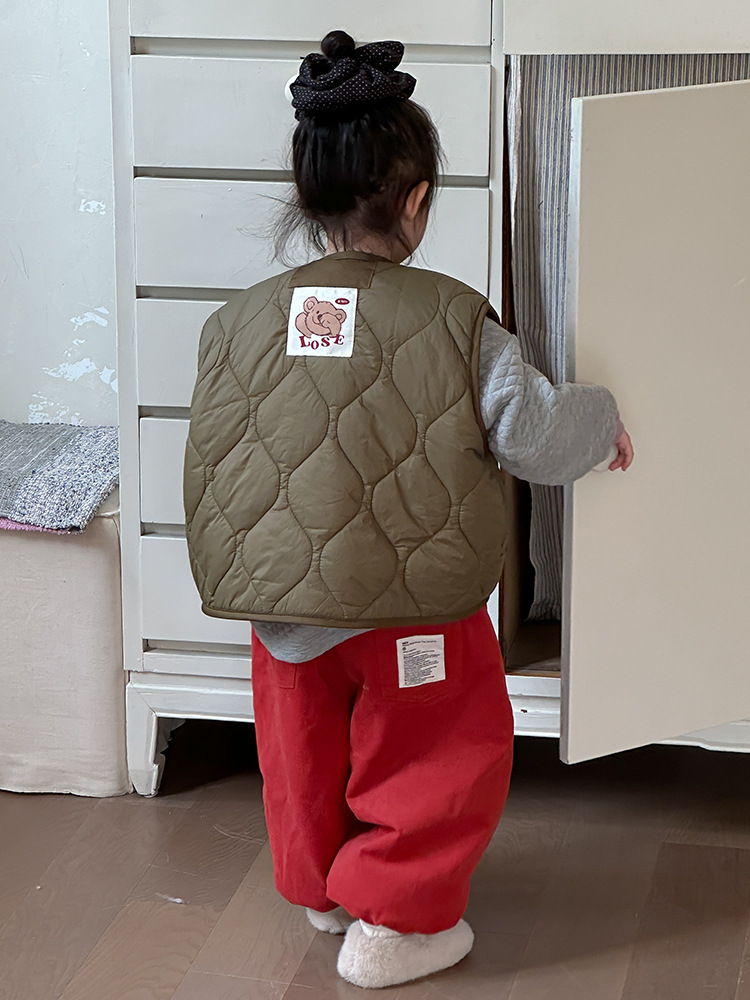 어린이 알파벳 자수 양면 양털 조끼 2024 겨울 새로운 스타일 일본식 중공업 퀼트 조끼 맞춤형스토어 가기