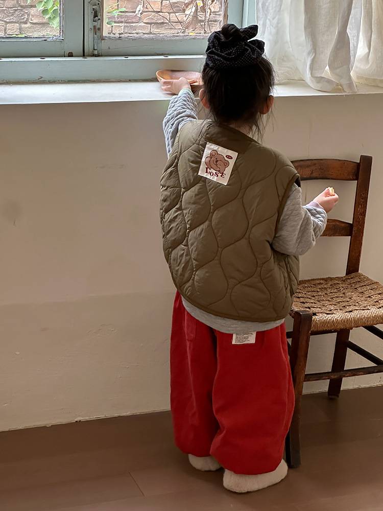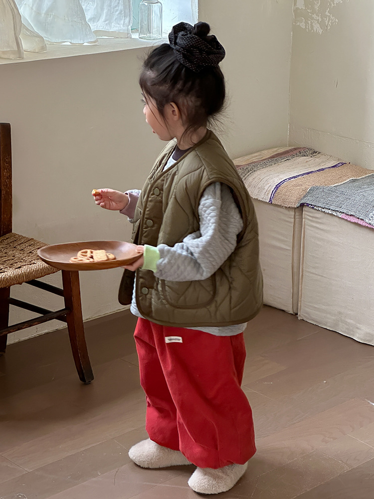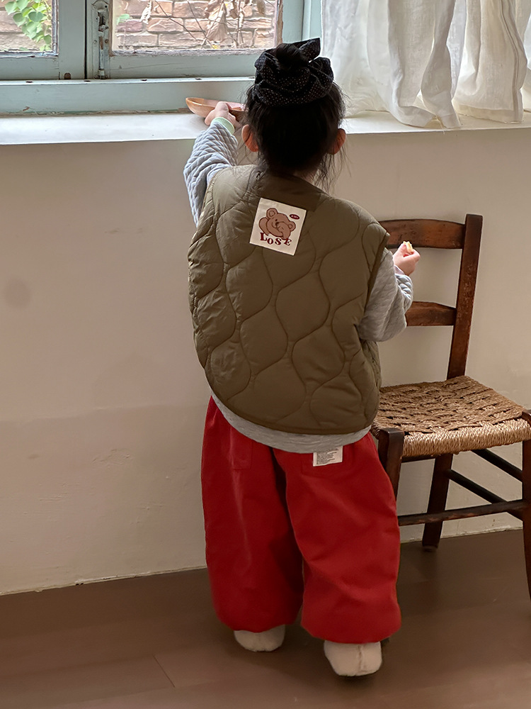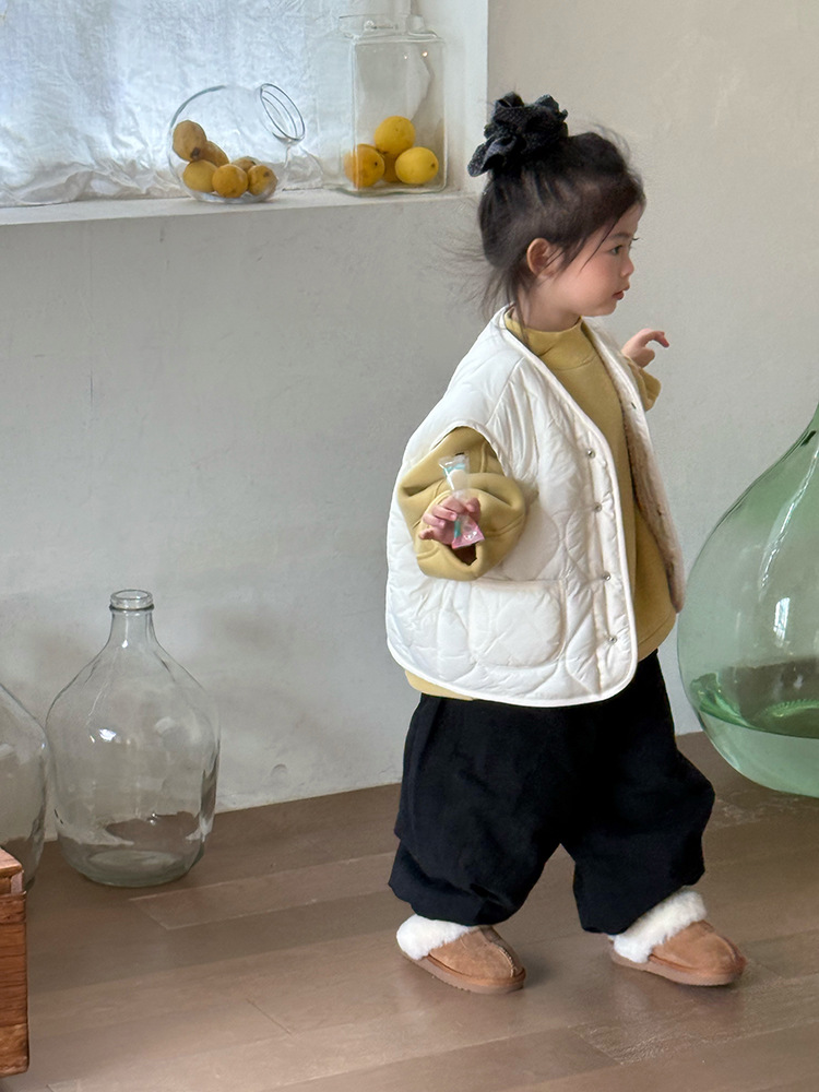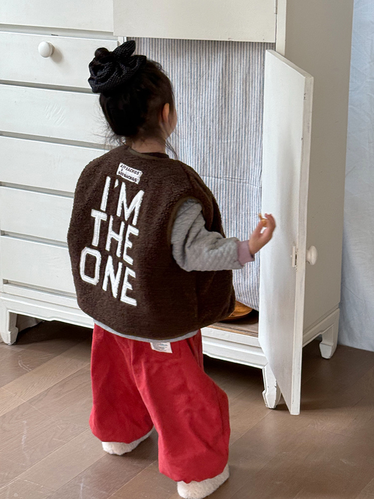 어린이 알파벳 자수 양면 양털 조끼 2024 겨울 새로운 스타일 일본식 중공업 퀼트 조끼 맞춤형스토어 가기