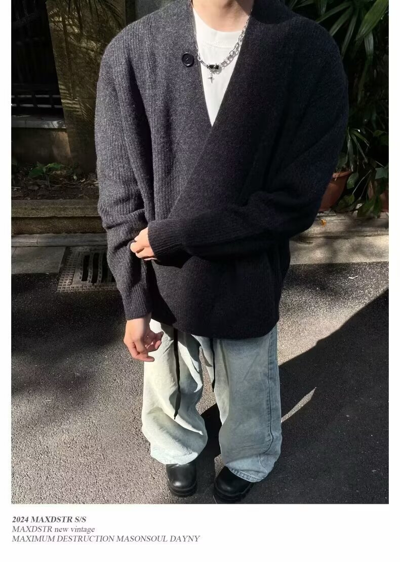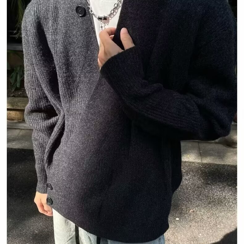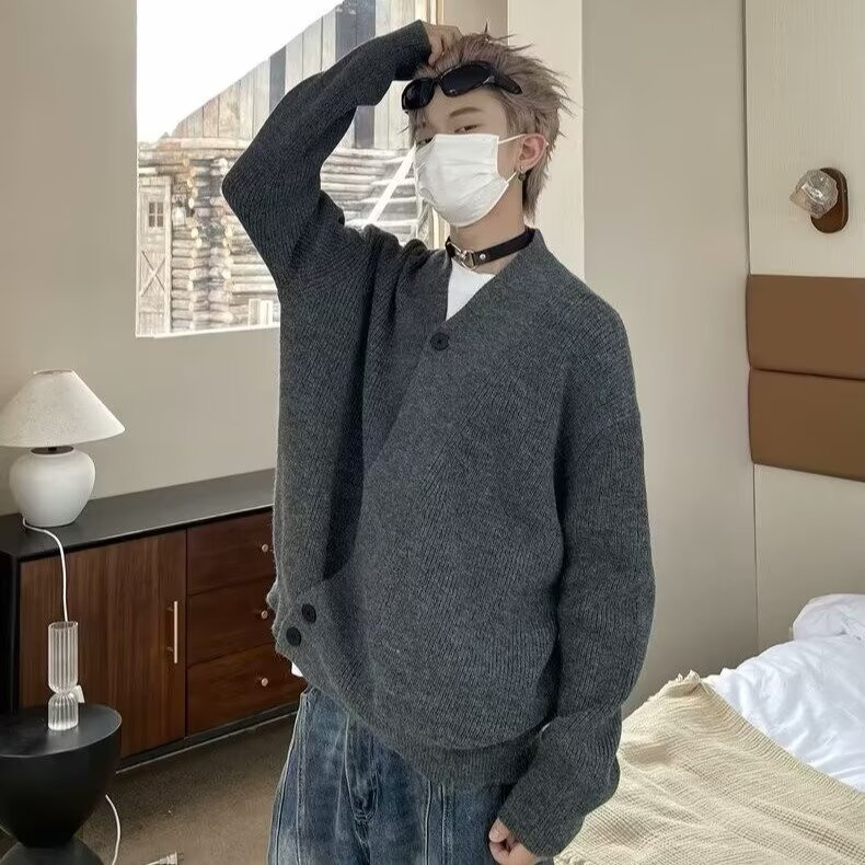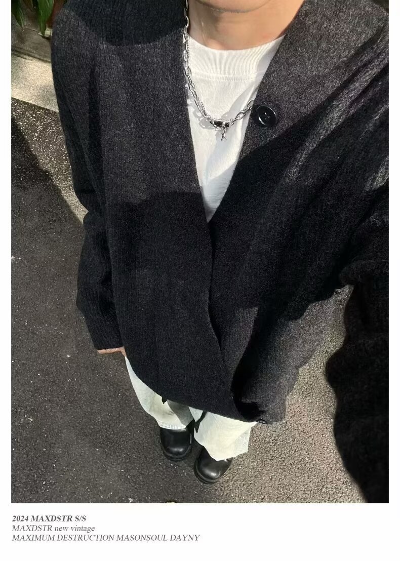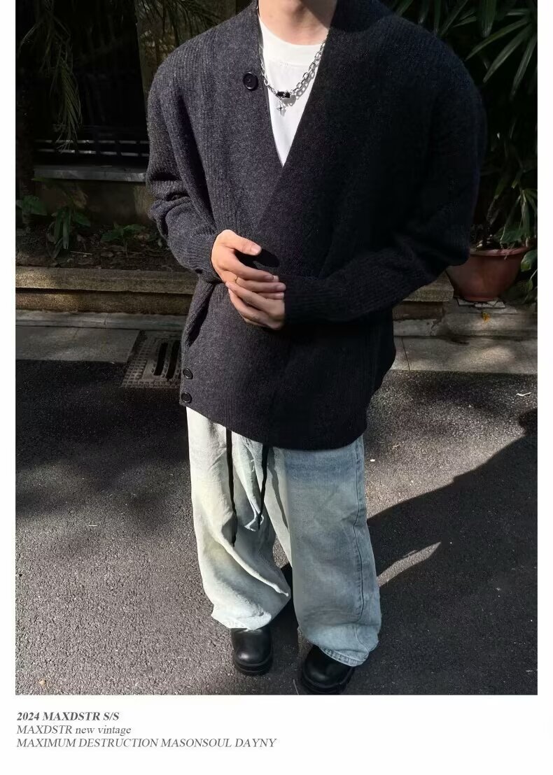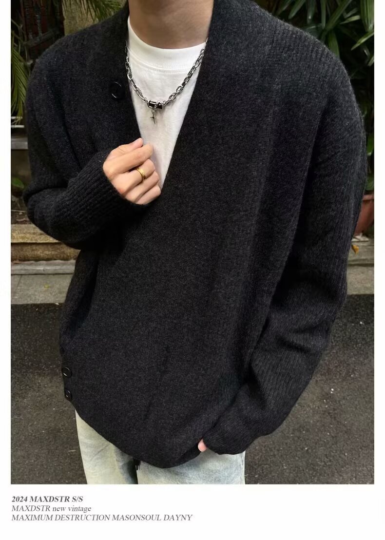 2024 가을과 겨울 새로운 카디건 스웨터 미국 복고풍 캐주얼 게으른 스타일 V 넥 스웨터 남성용 단색 코트