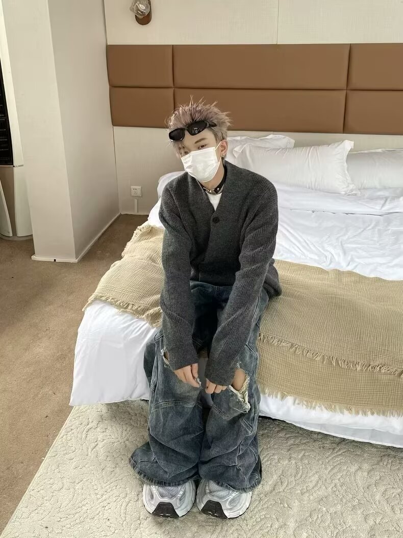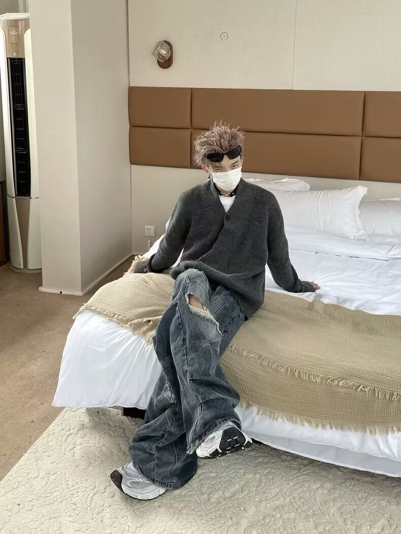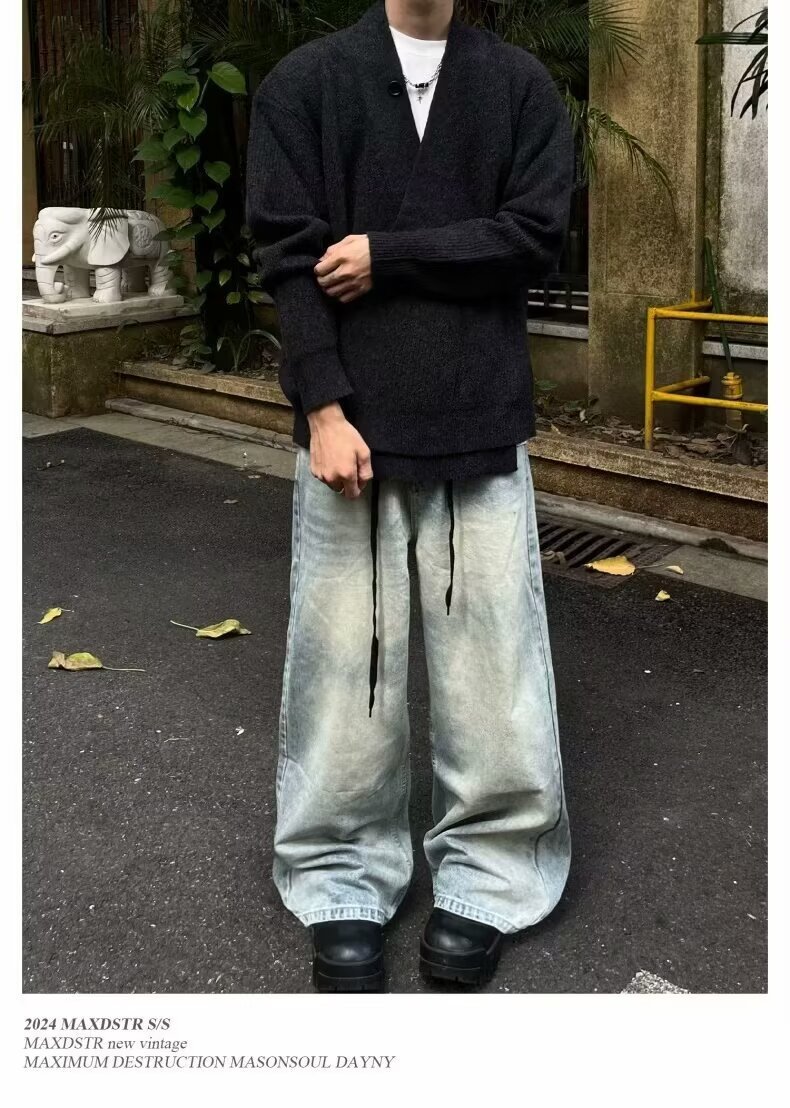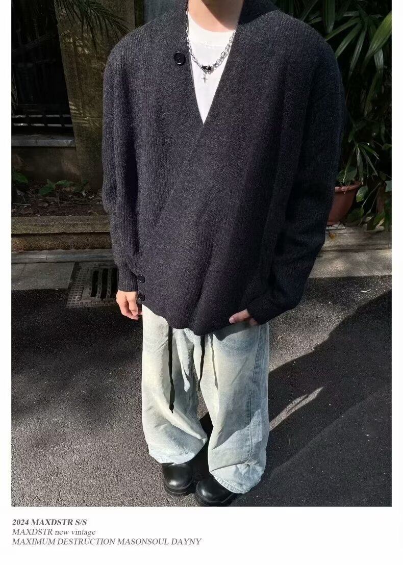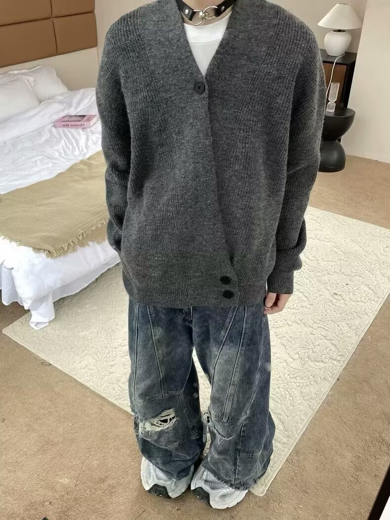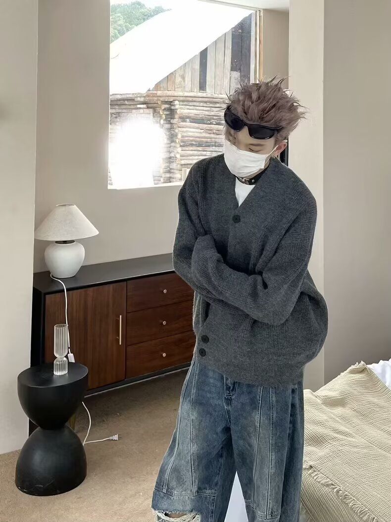 2024 가을과 겨울 새로운 카디건 스웨터 미국 복고풍 캐주얼 게으른 스타일 V 넥 스웨터 남성용 단색 코트