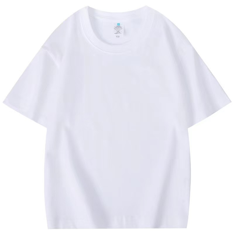 220g 어린이용 코마면 라운드넥 반팔 여름 신상 오프숄더 캐주얼 만능 단색 아동 티셔츠 상의