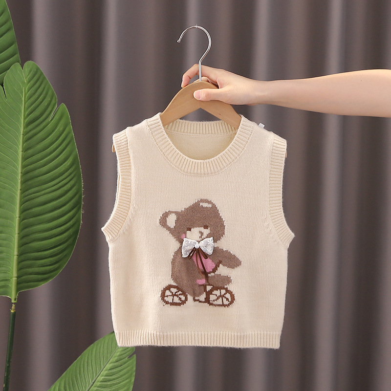 여자 니트 조끼 2025 봄 새로운 만화 스웨터 조끼 풀오버 웨이스트 코트 민소매 조끼 스타일 탑스토어 가기