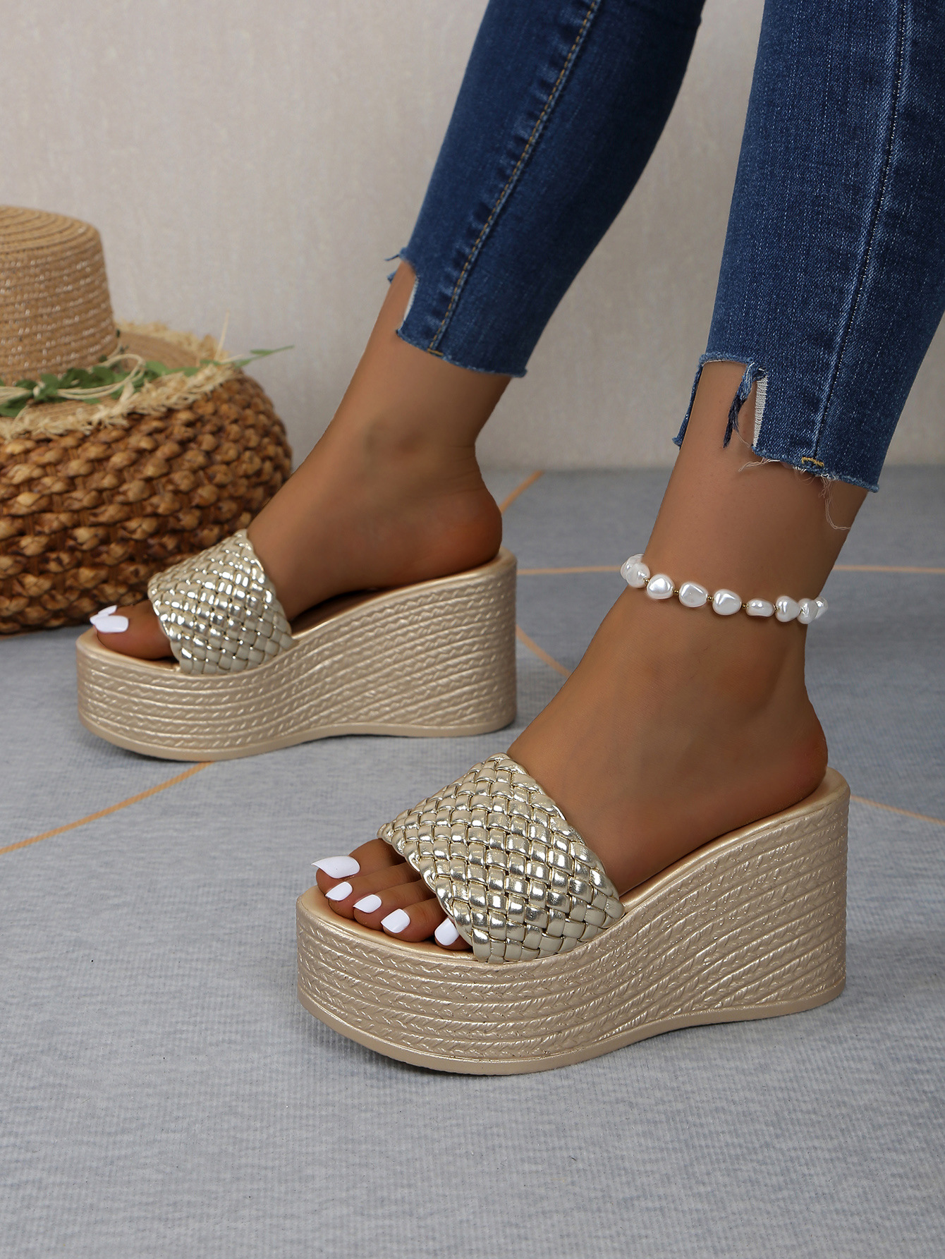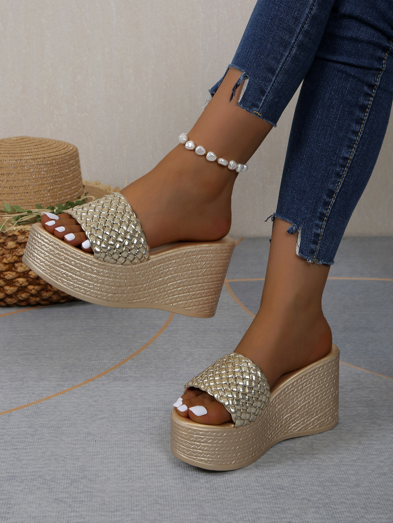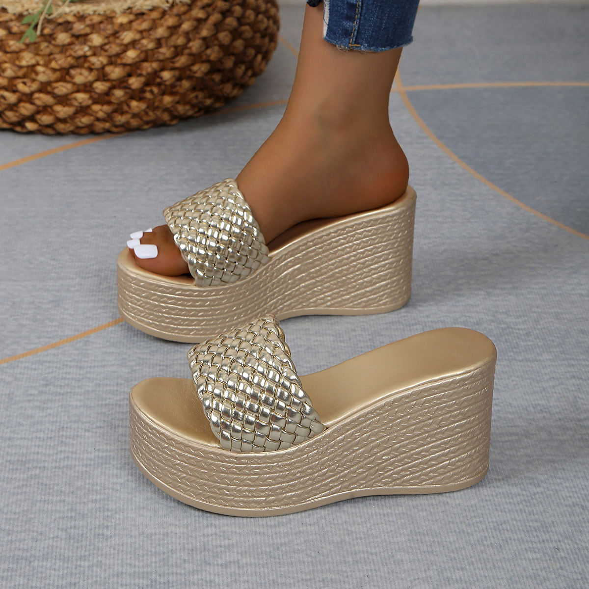아마존 2024 여름 새로운 유럽과 미국의 쐐기 두꺼운 바닥 생선 입 짠 경량 슬립 샌들 플러스 사이즈