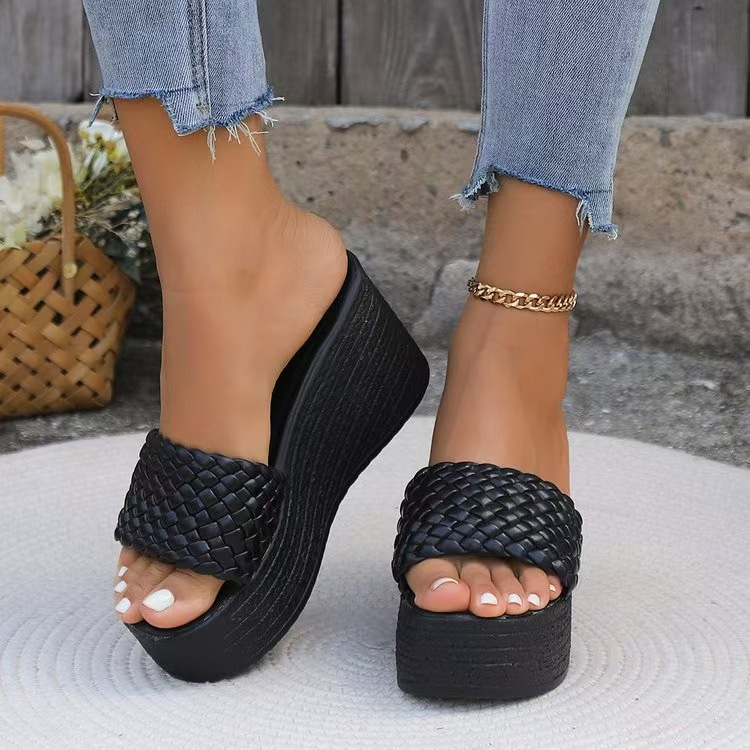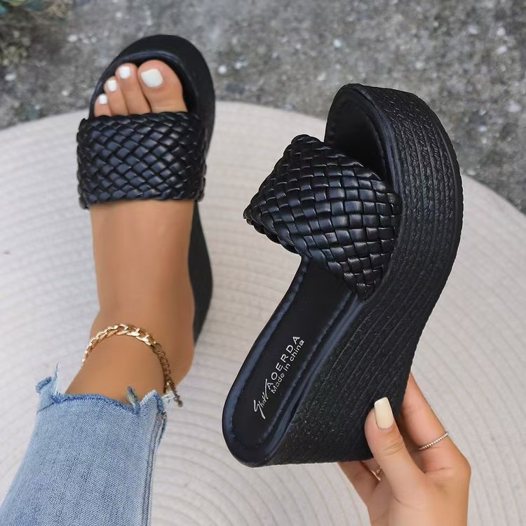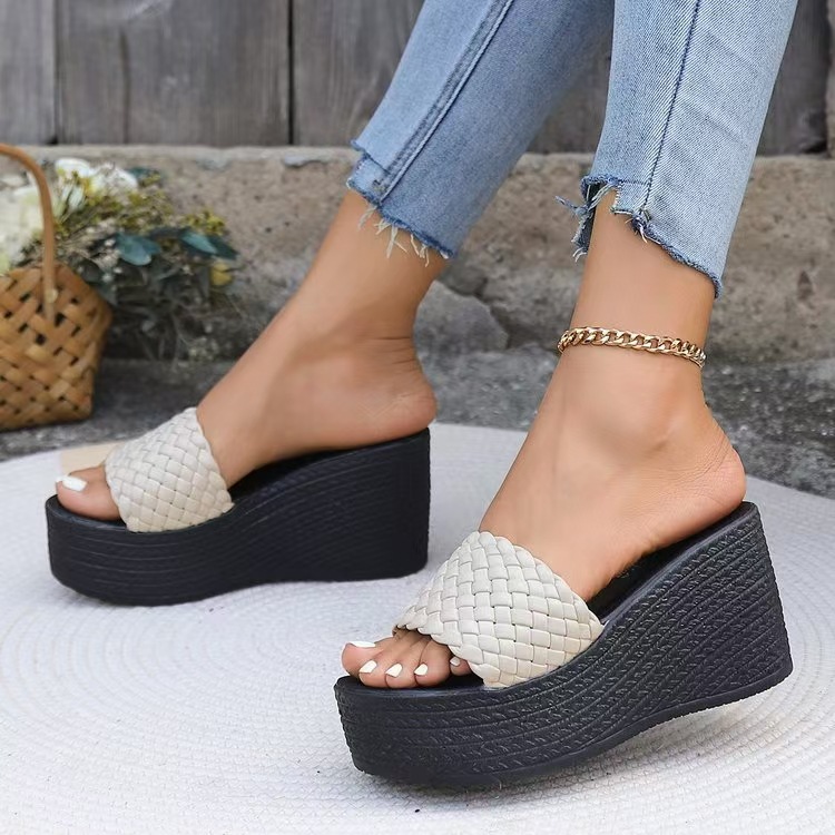 아마존 2024 여름 새로운 유럽과 미국의 쐐기 두꺼운 바닥 생선 입 짠 경량 슬립 샌들 플러스 사이즈스토어 가기