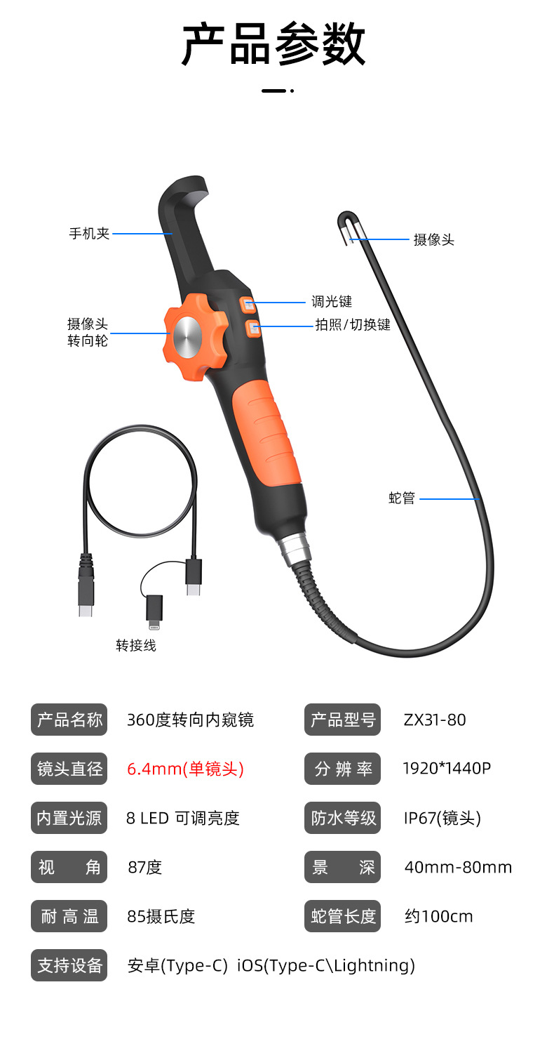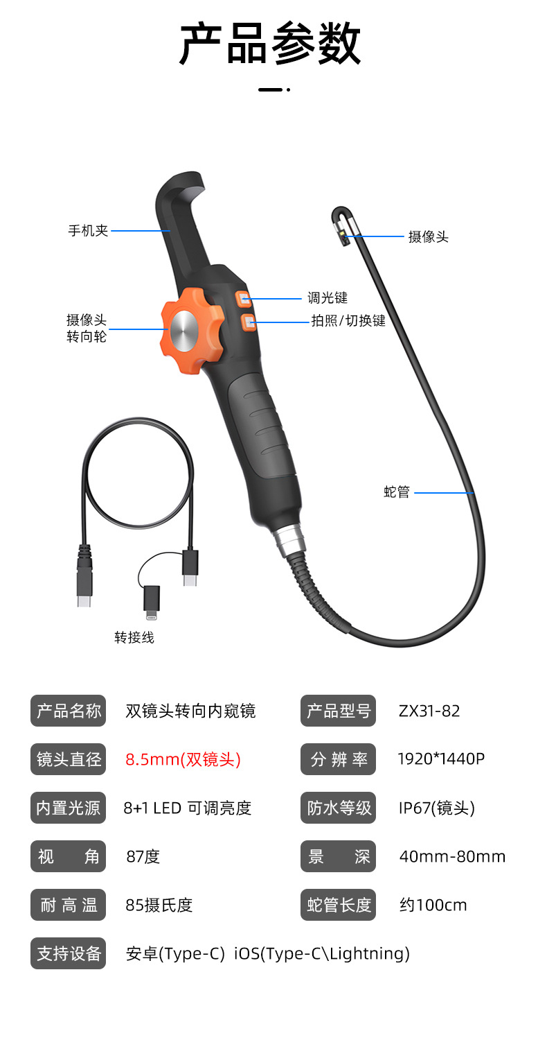 镜头直径:8.5mm双镜头/6.4mm单镜头