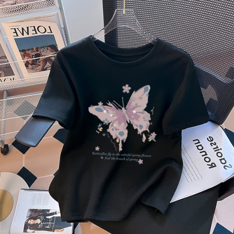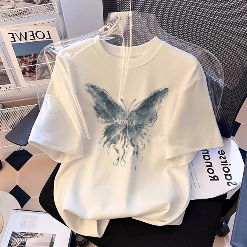 패셔너블한 프린트 라운드넥 반팔 티셔츠 여성용 2025 신상 유럽풍 루즈핏 반팔 티셔츠 슬림핏 여름 상의 트렌디스토어 가기