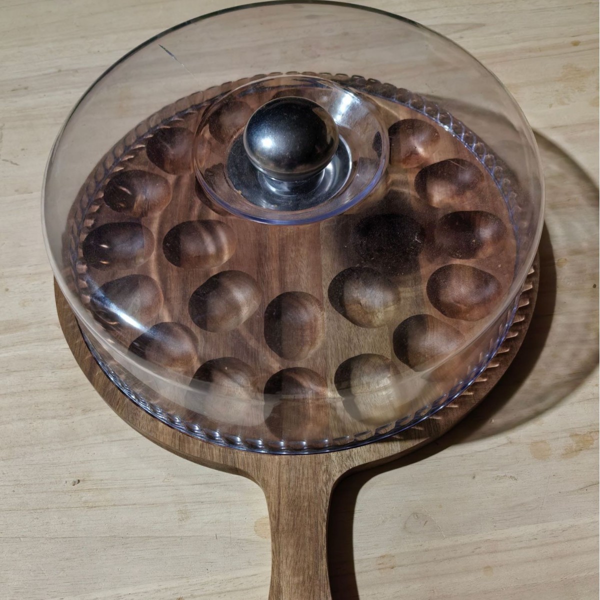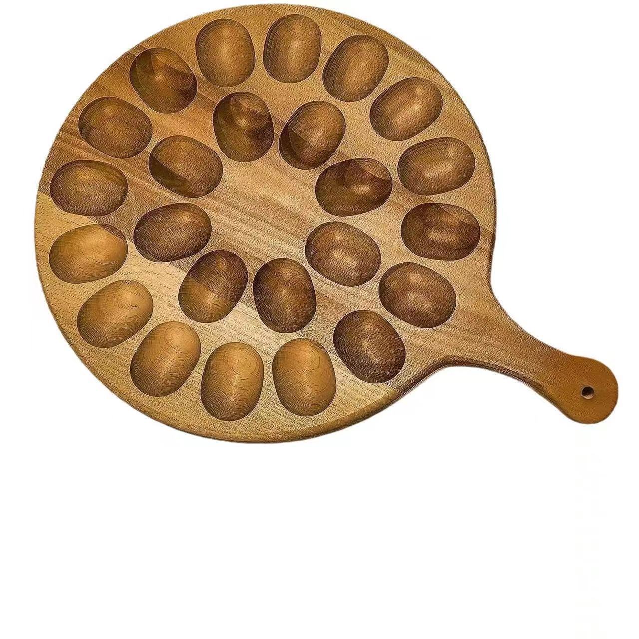 단단한 나무 계란 쟁반 멀티 구획 주방 계란 쟁반 나무 멀티 구획 둥근 나무 멀티 구획 오리 계란 쟁반 손잡이스토어 가기