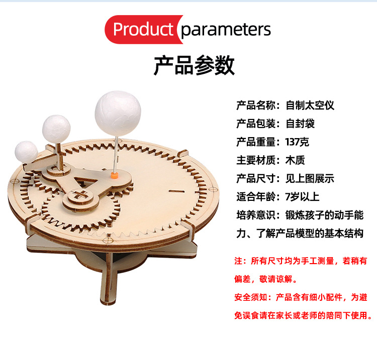 DIY 과학 실험 태양 지구 달 나무 수제 공간 악기 행성 모델 천문 디스플레이 교육 장난감