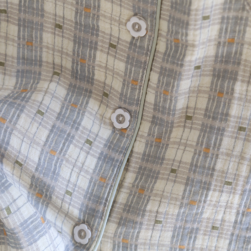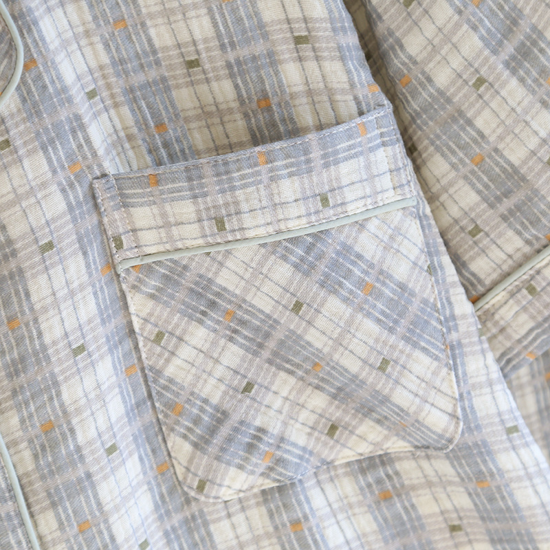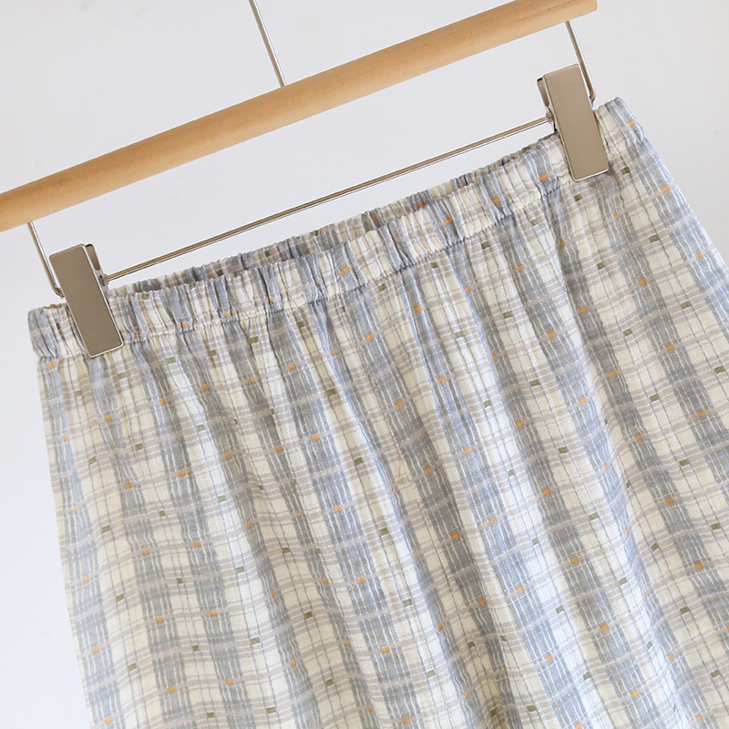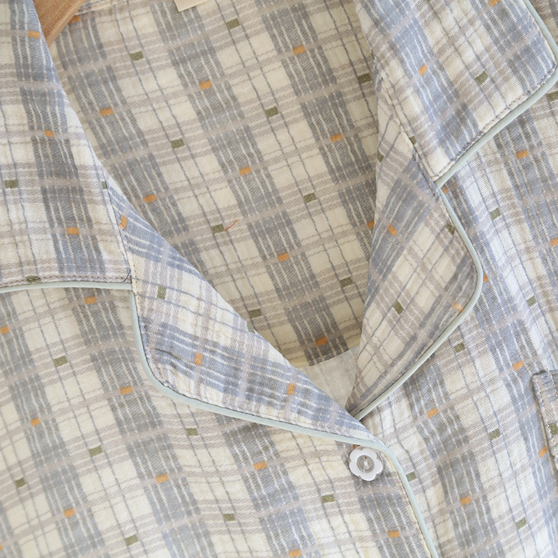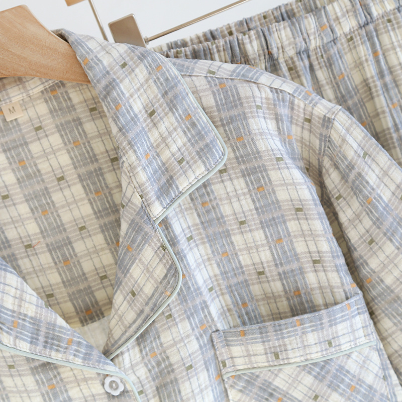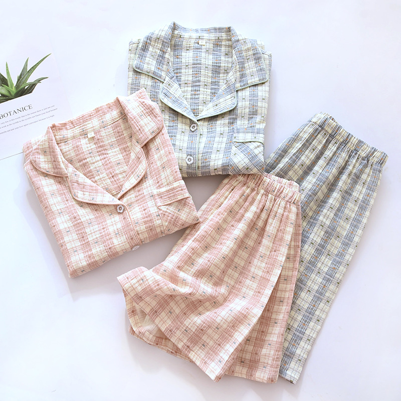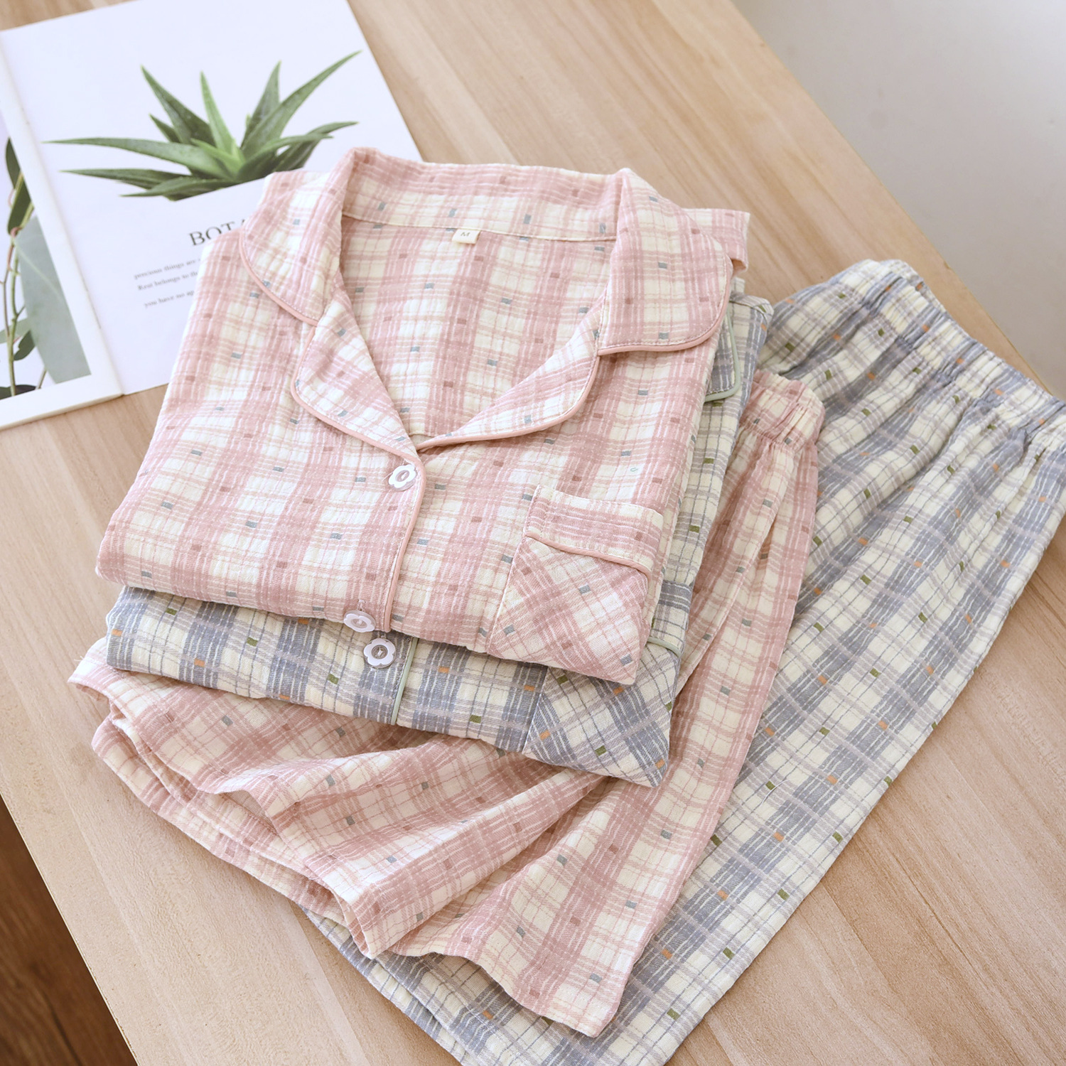 여름 새로운 크레페 코튼 반팔 반바지 커플 잠옷 세트 느슨한 간단한 패션 남성과 여성의 투피스 세트스토어 가기