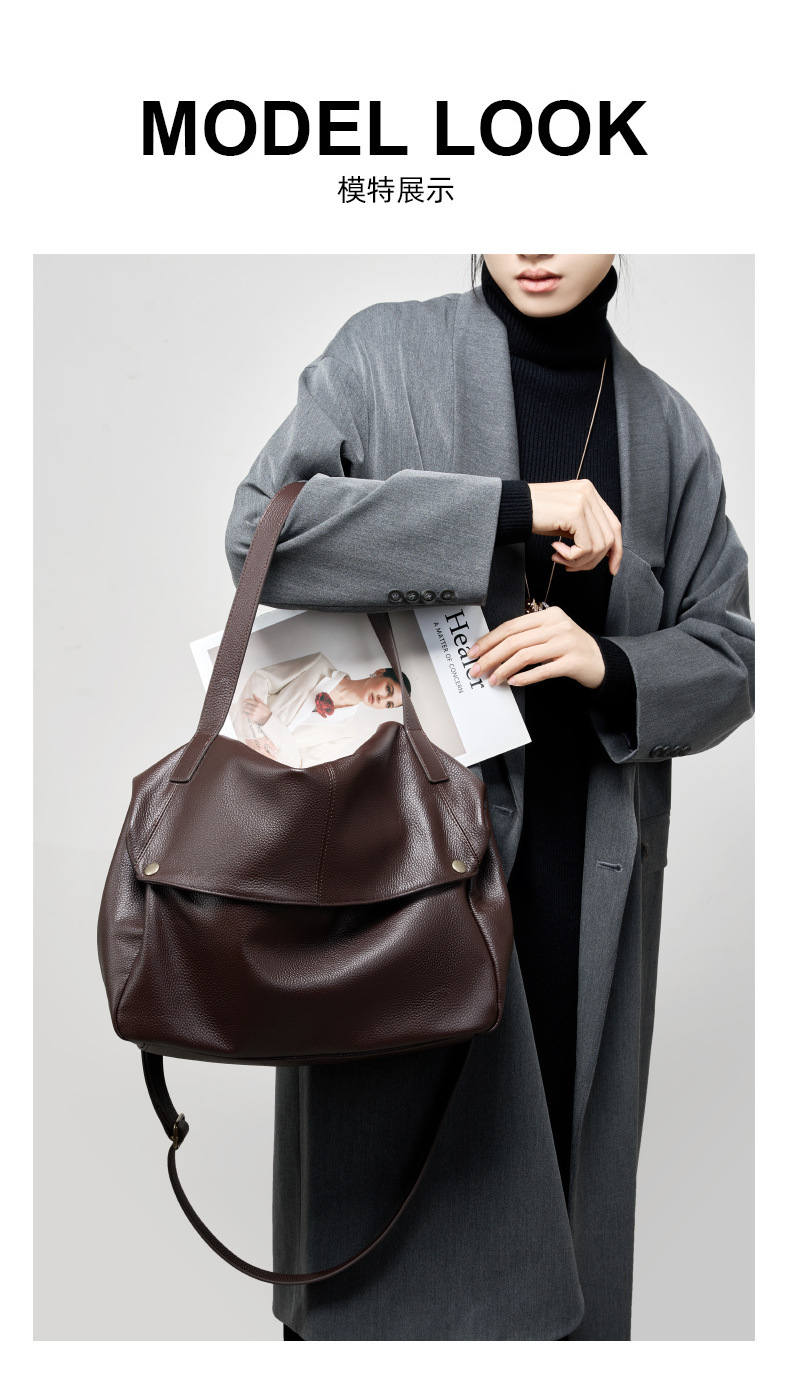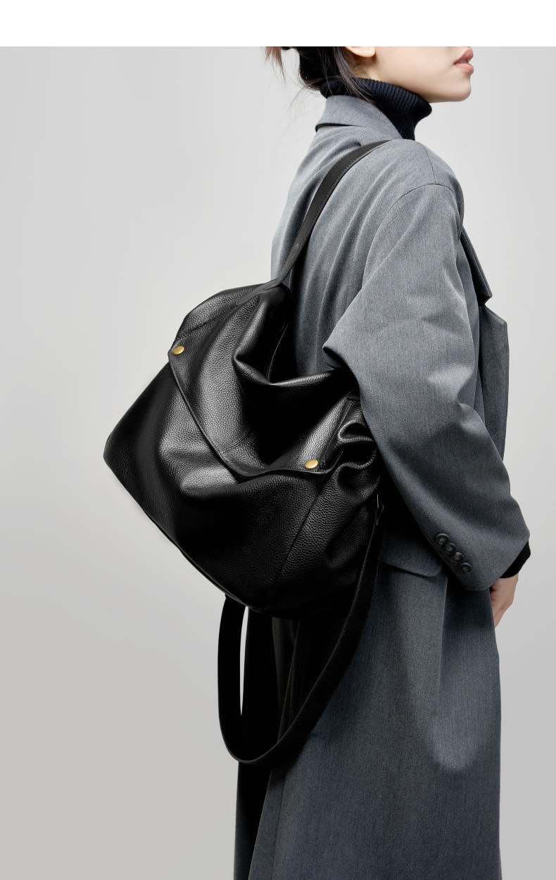 2025 겨울 새로운 대용량 싱글 숄더 정품 가죽 대형 가방 유럽과 미국 스타일의 부드러운 가죽 토트 백 간단한 캐주얼 여성 가방스토어 가기