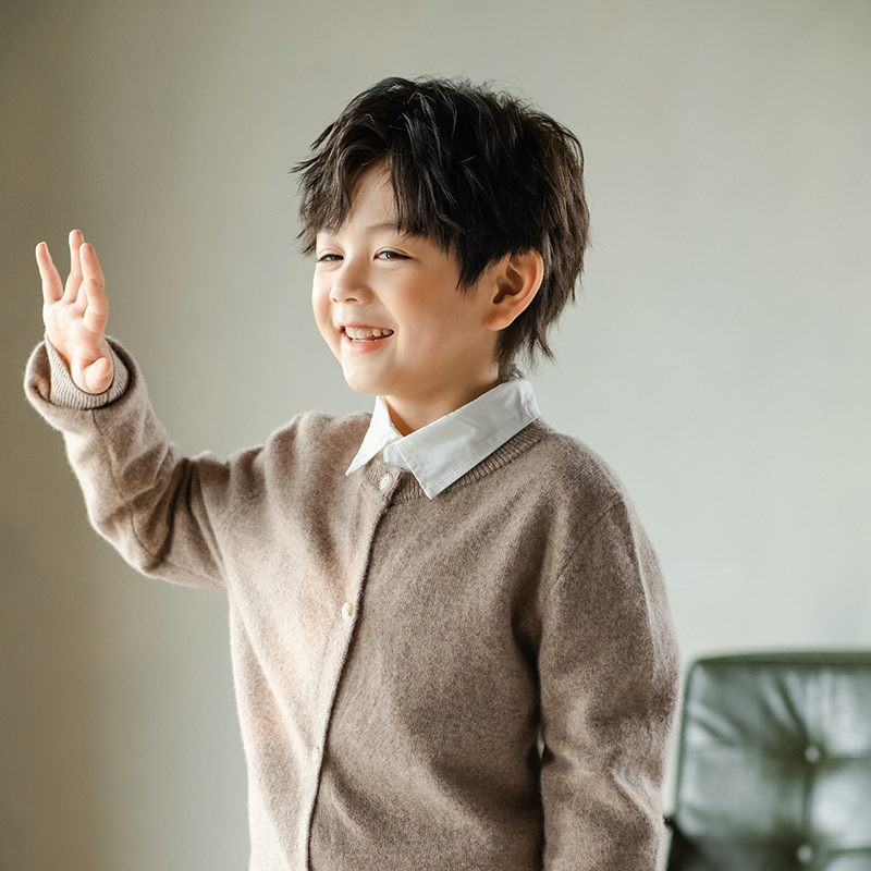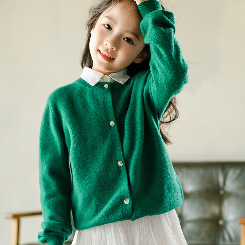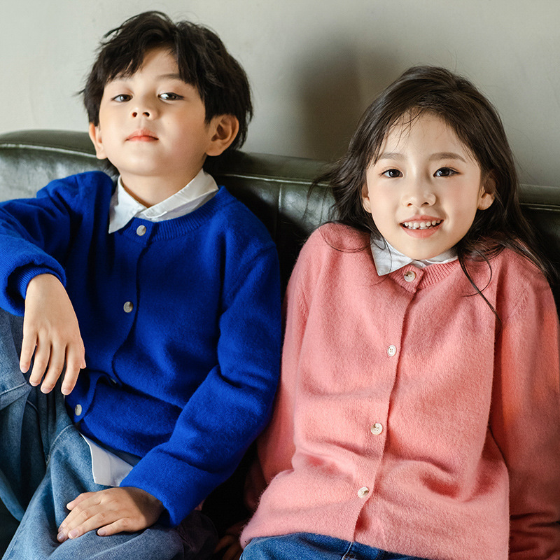메리노 울 카디건 가을과 겨울 긴 소매 작은 코트 단색 외부 스웨터 남성과 여성의 아기 옷