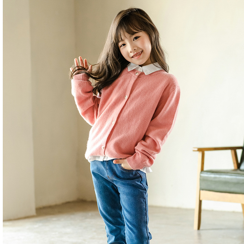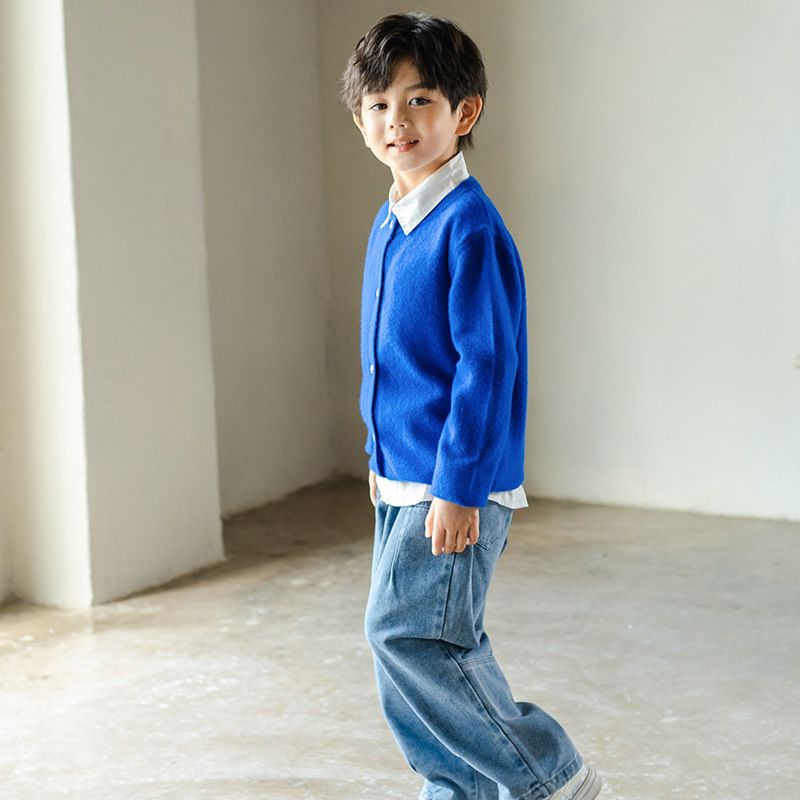 메리노 울 카디건 가을과 겨울 긴 소매 작은 코트 단색 외부 스웨터 남성과 여성의 아기 옷스토어 가기