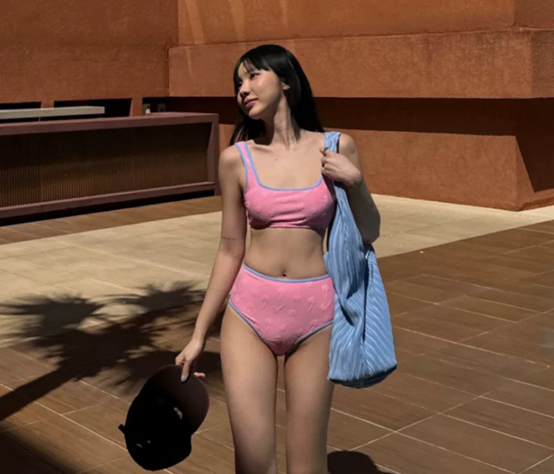 2 색] 일본과 한국의 새로운 순수한 욕망 스타일 소녀 솔리드 컬러 스플릿 수영복 여성 비키니 인 스타일 홀리데이 비키니
