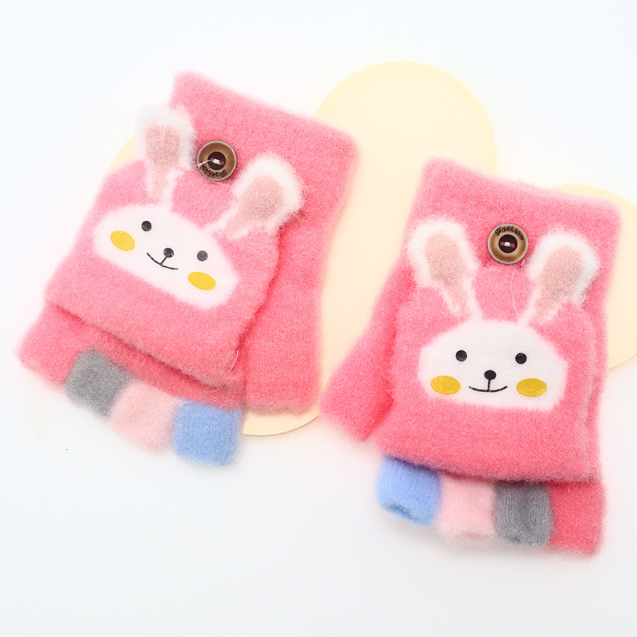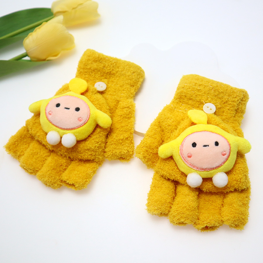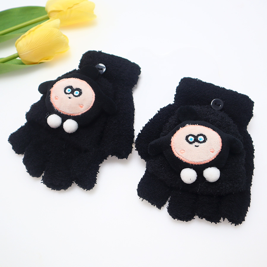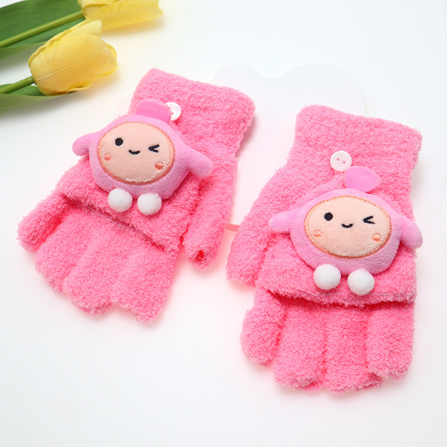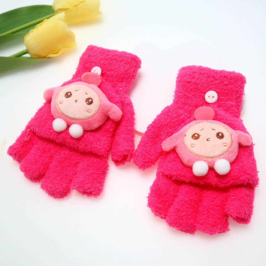 어린이 장갑 겨울 두꺼운 플립 산호 양털 만화 반 손가락 장갑 초등학생 유치원 소녀 글쓰기