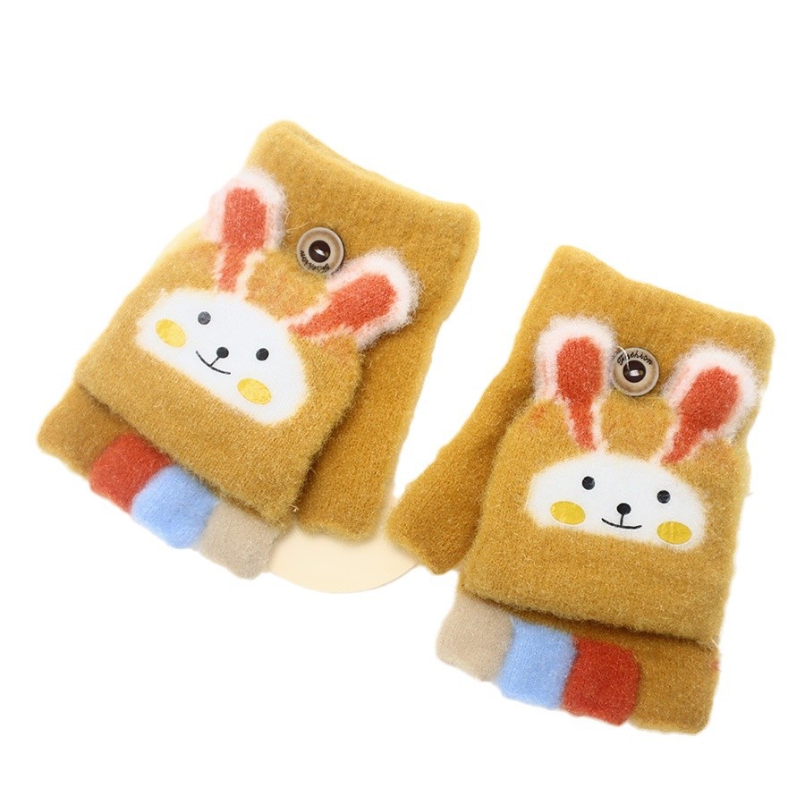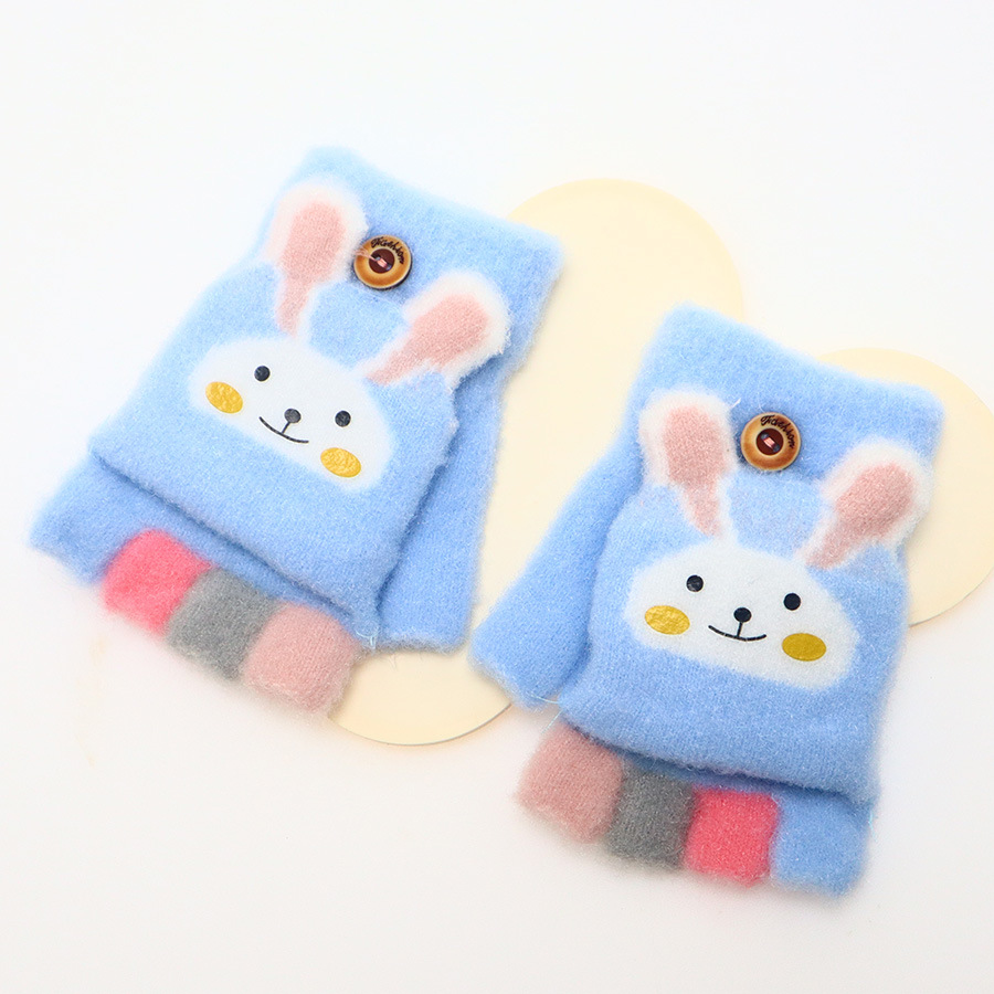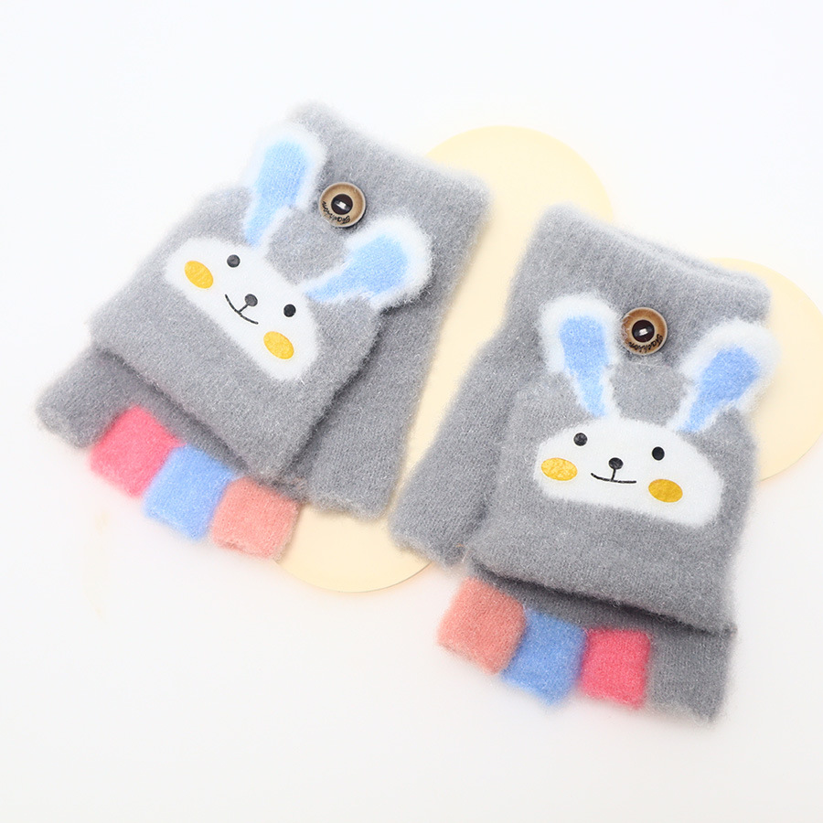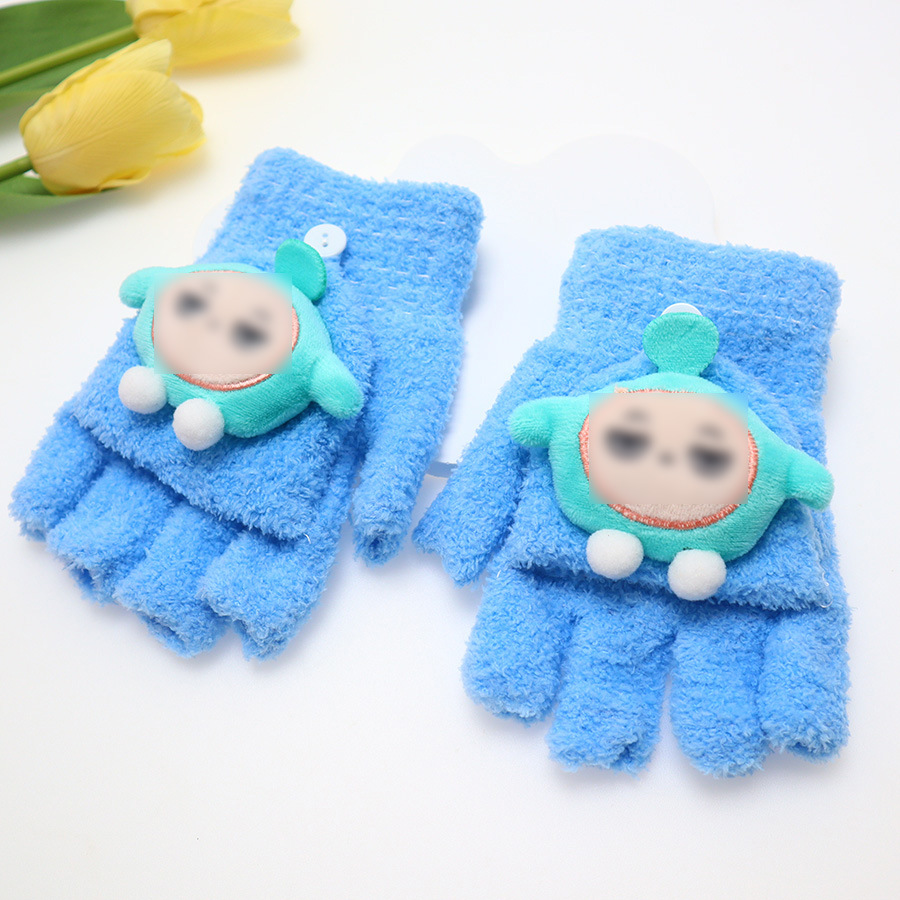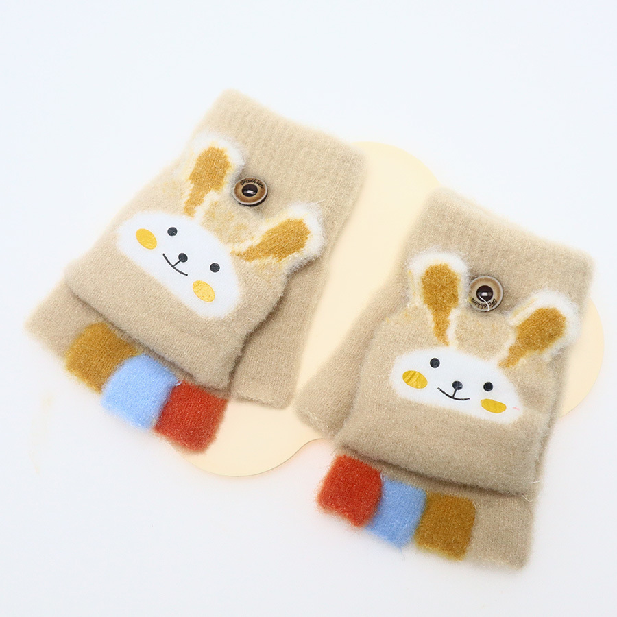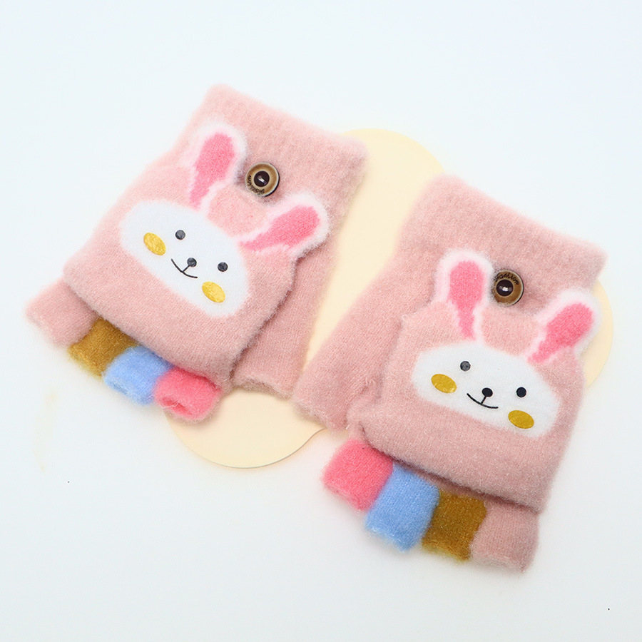 어린이 장갑 겨울 두꺼운 플립 산호 양털 만화 반 손가락 장갑 초등학생 유치원 소녀 글쓰기