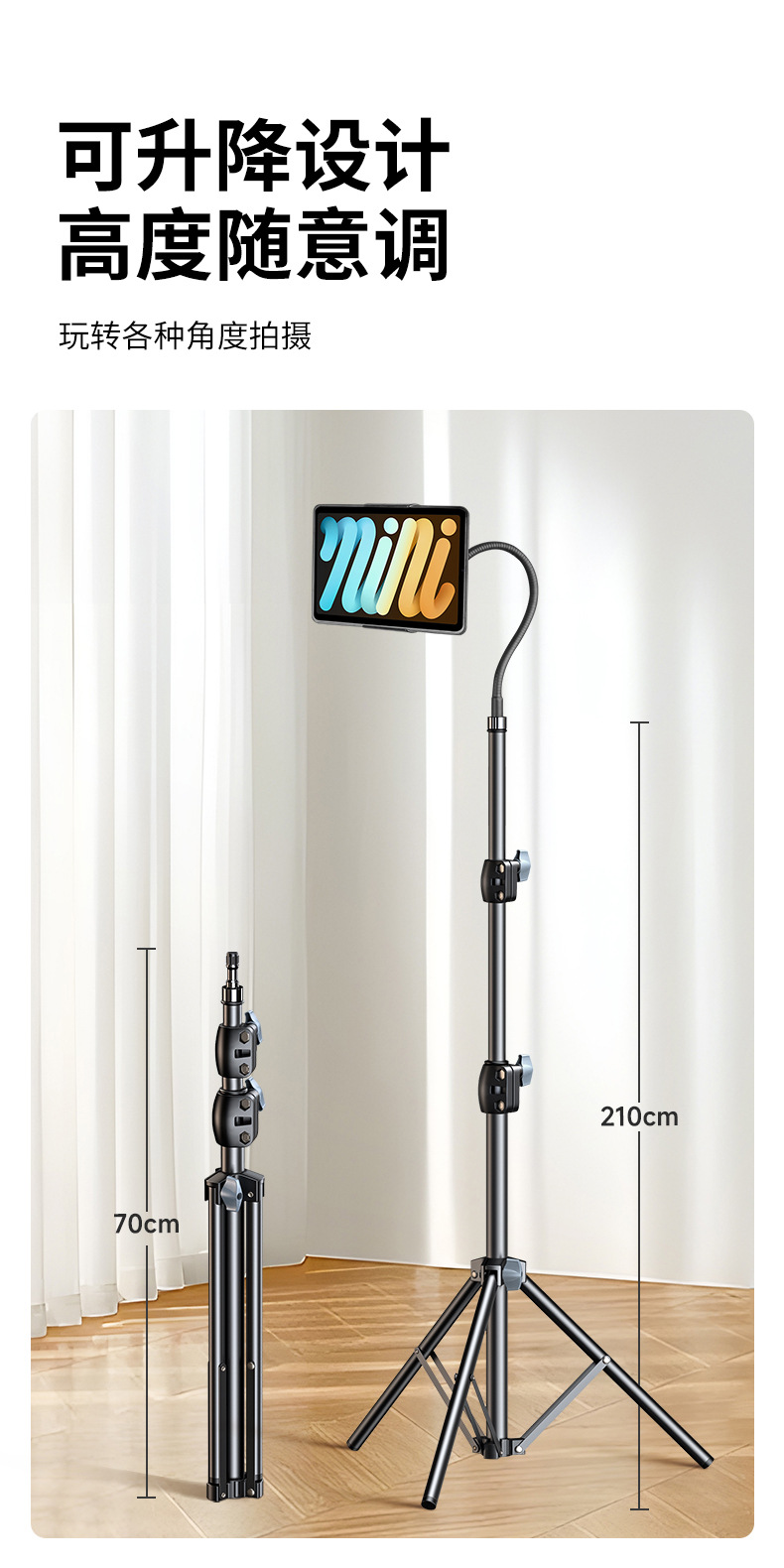 • 원격 제어 기능이 있는 1.7m 휴대폰 및 태블릿용 범용