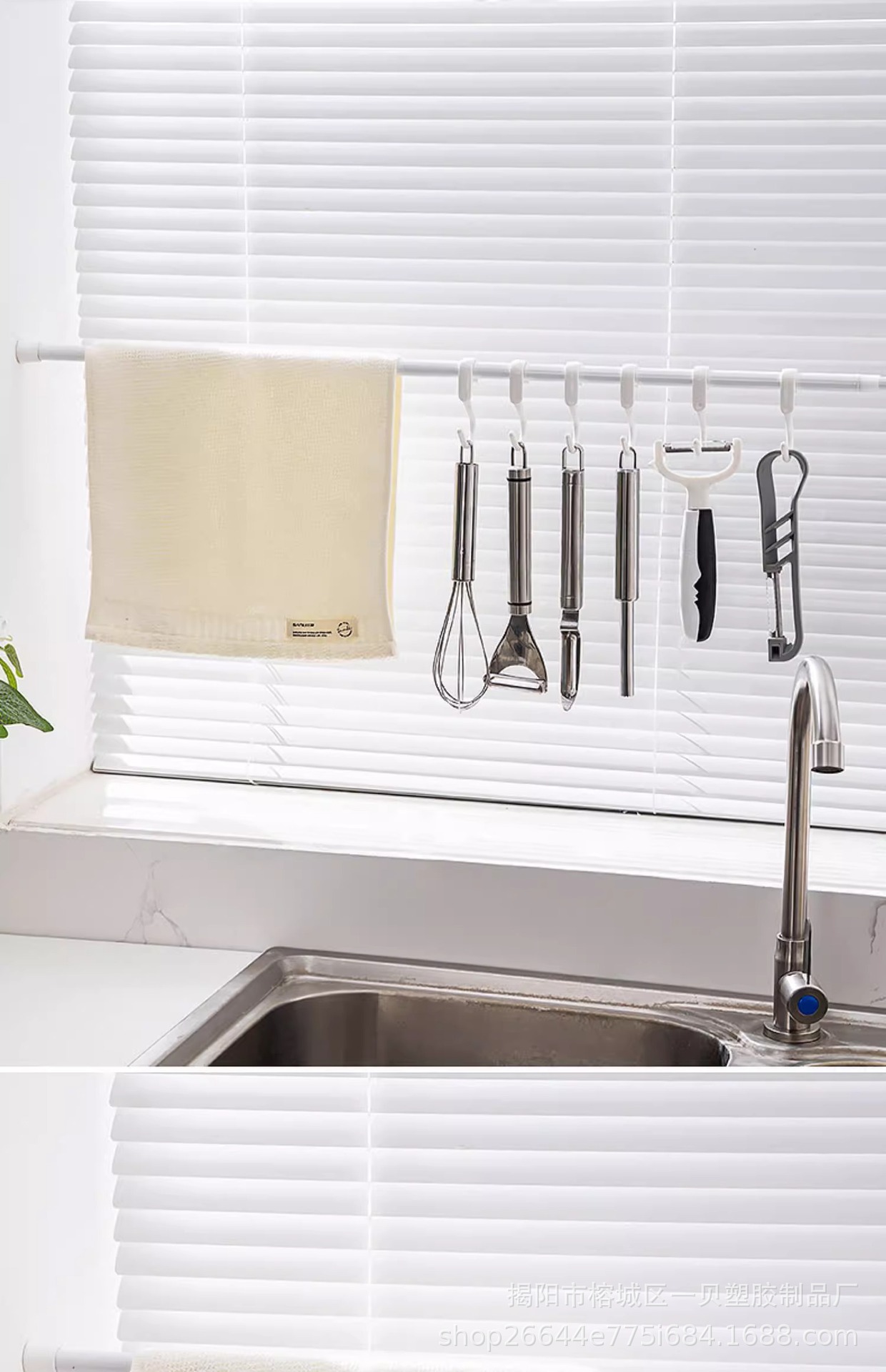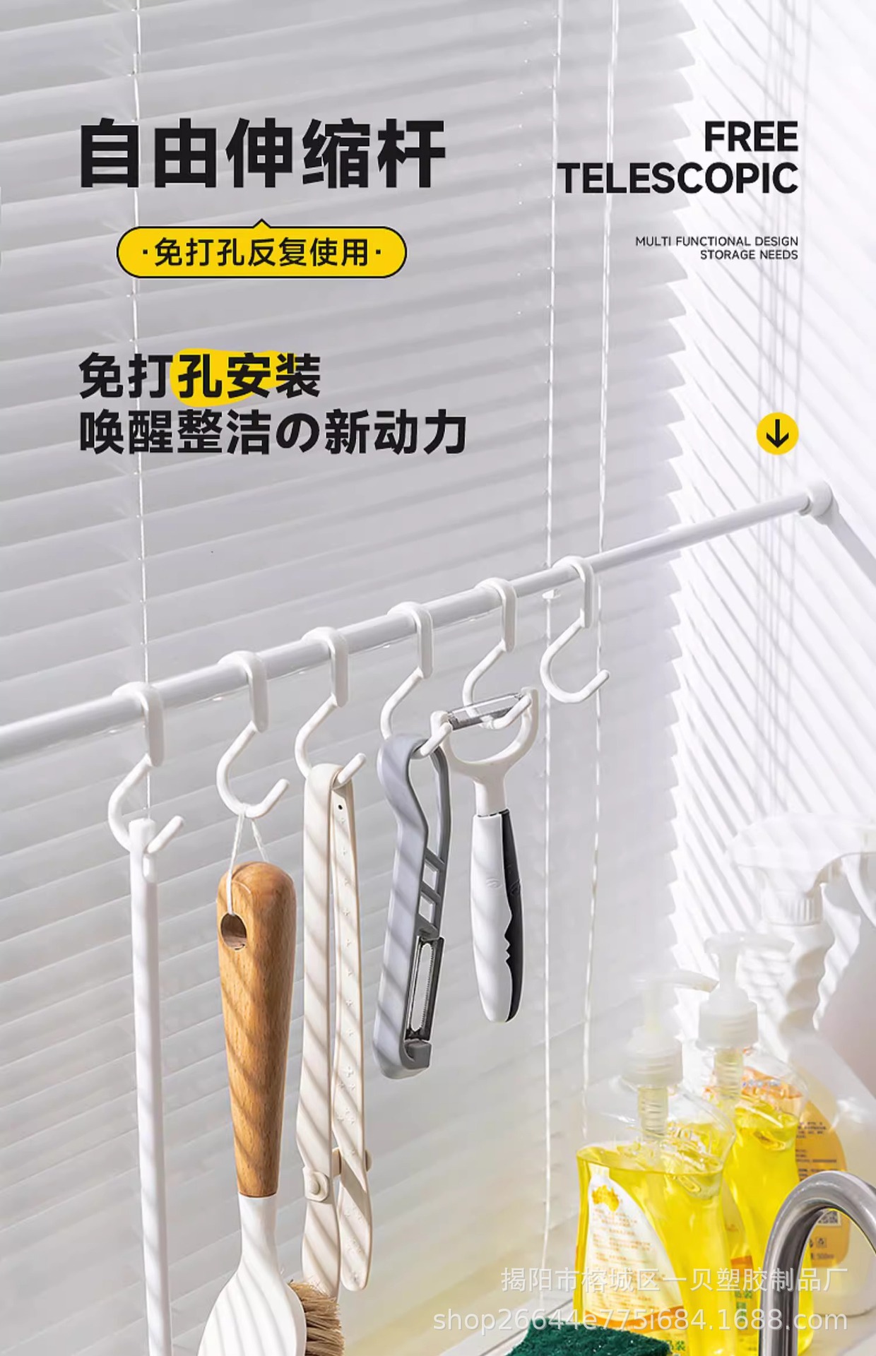주방 창 Sill 스토리지 랙 텔레스코픽 로드 교수형 펀치없는 창 창 창 보관 아티팩트 천 랙 후크스토어 가기