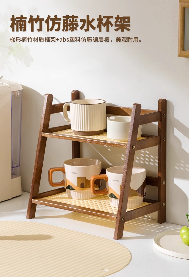 컵 스토리지 랙 등나무 같은 컵 홀더 더블 레이어 데스크탑 잡화 물 컵 스토리지 랙 기숙사 주방 스토리지 랙