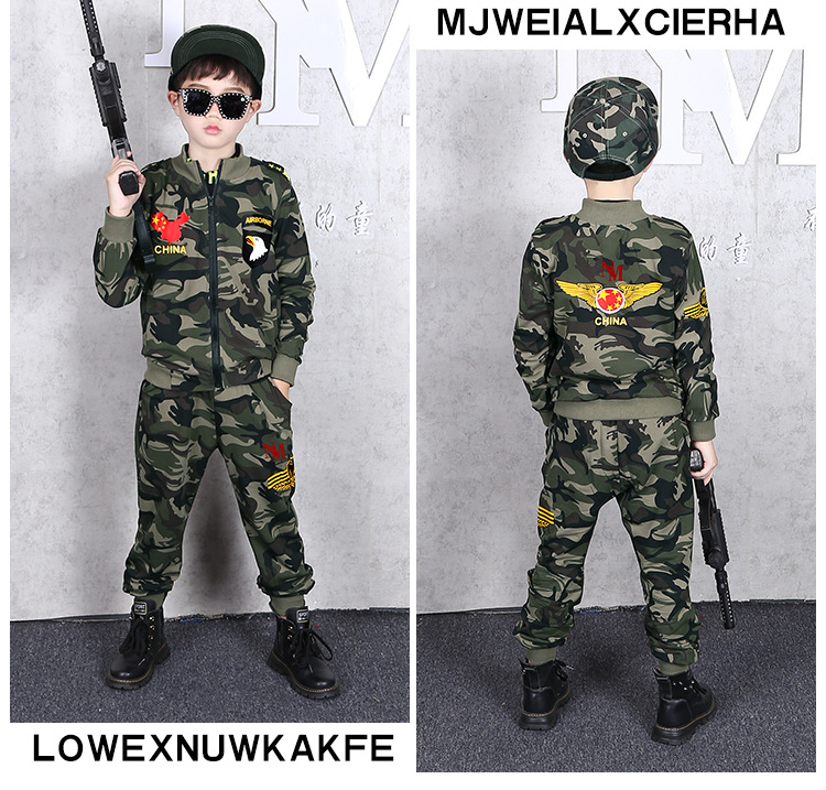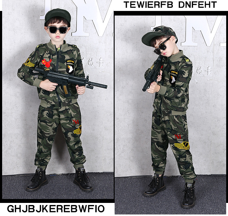 새끼 소년 가을 위장 세트 2024 새로운 소년 서양 스타일 가을 투피스 러피 잘 생긴 위장 패션스토어 가기