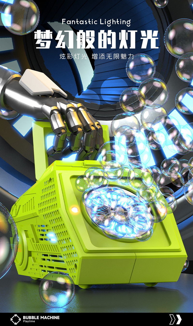 국경 간 폭발 전기 거품 장난감 자동 거품 부는 꿈 빛 소리 거품 기계 어린이 장난감 도매스토어 가기