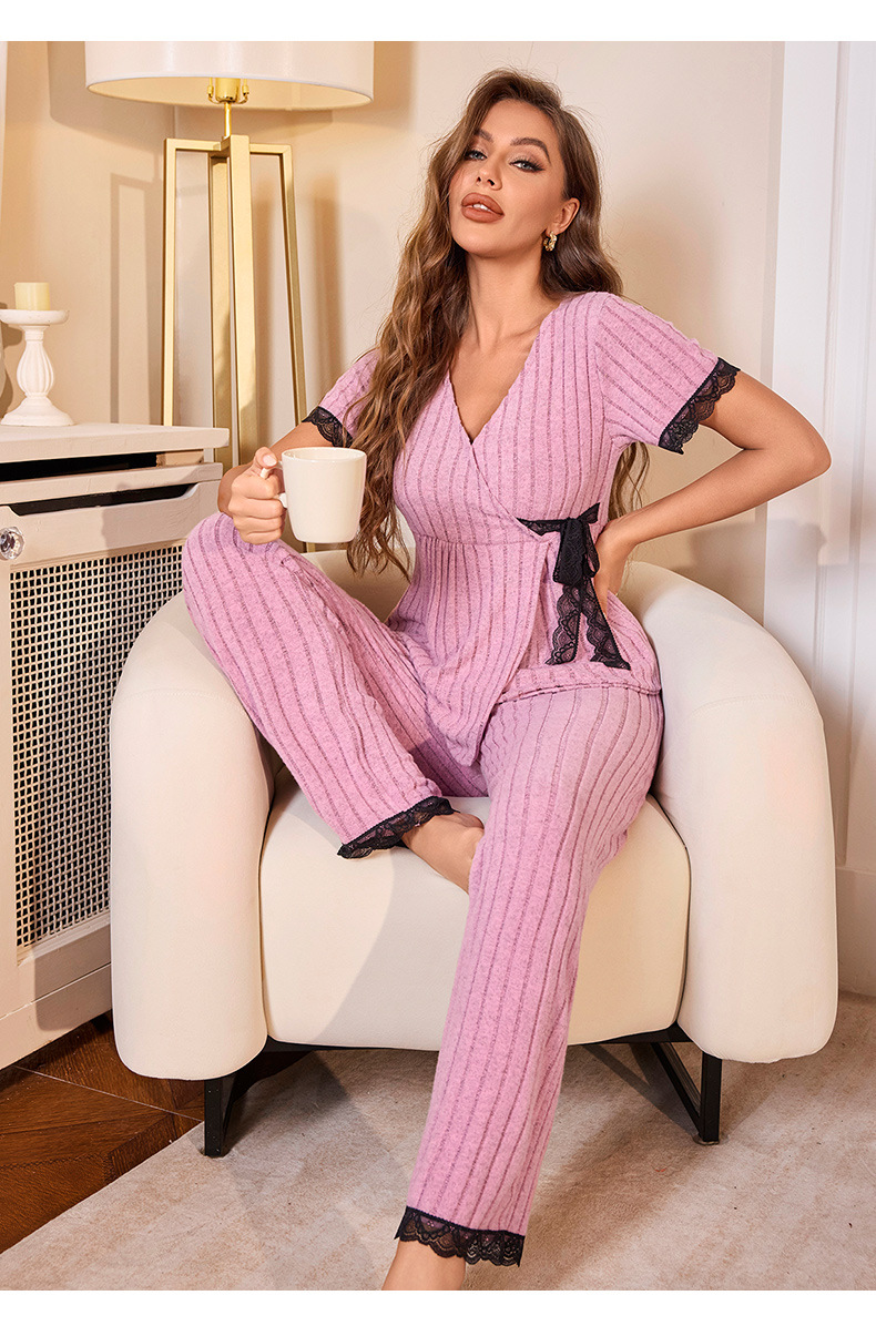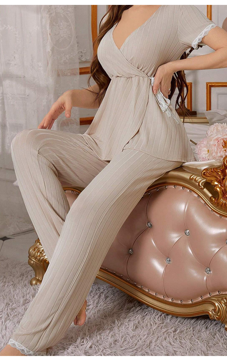 유럽과 미국의 국경을 넘는 새로운 두꺼운 짧은 소매는 바지 가정용 옷 2 피스 세트 여성 잠옷을 입을 수 있습니다.스토어 가기