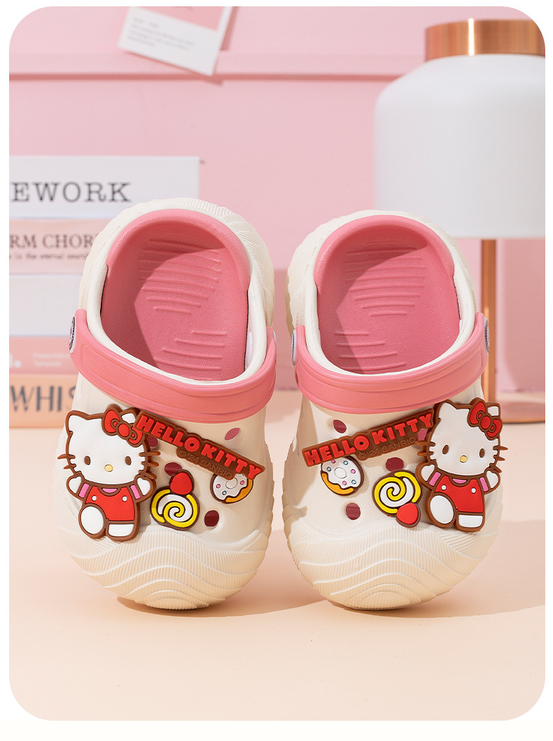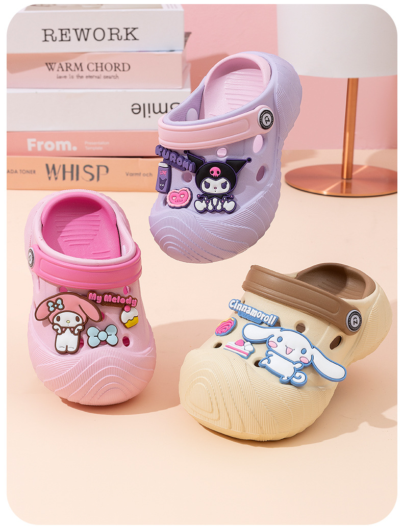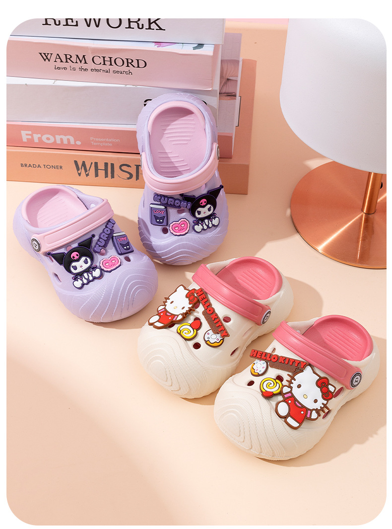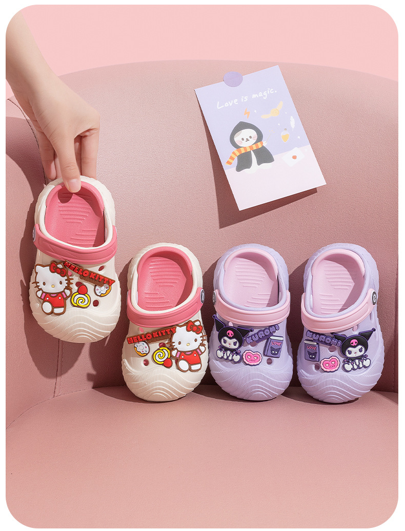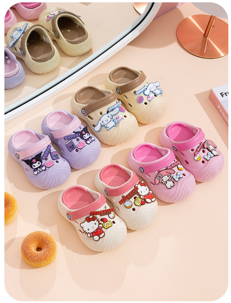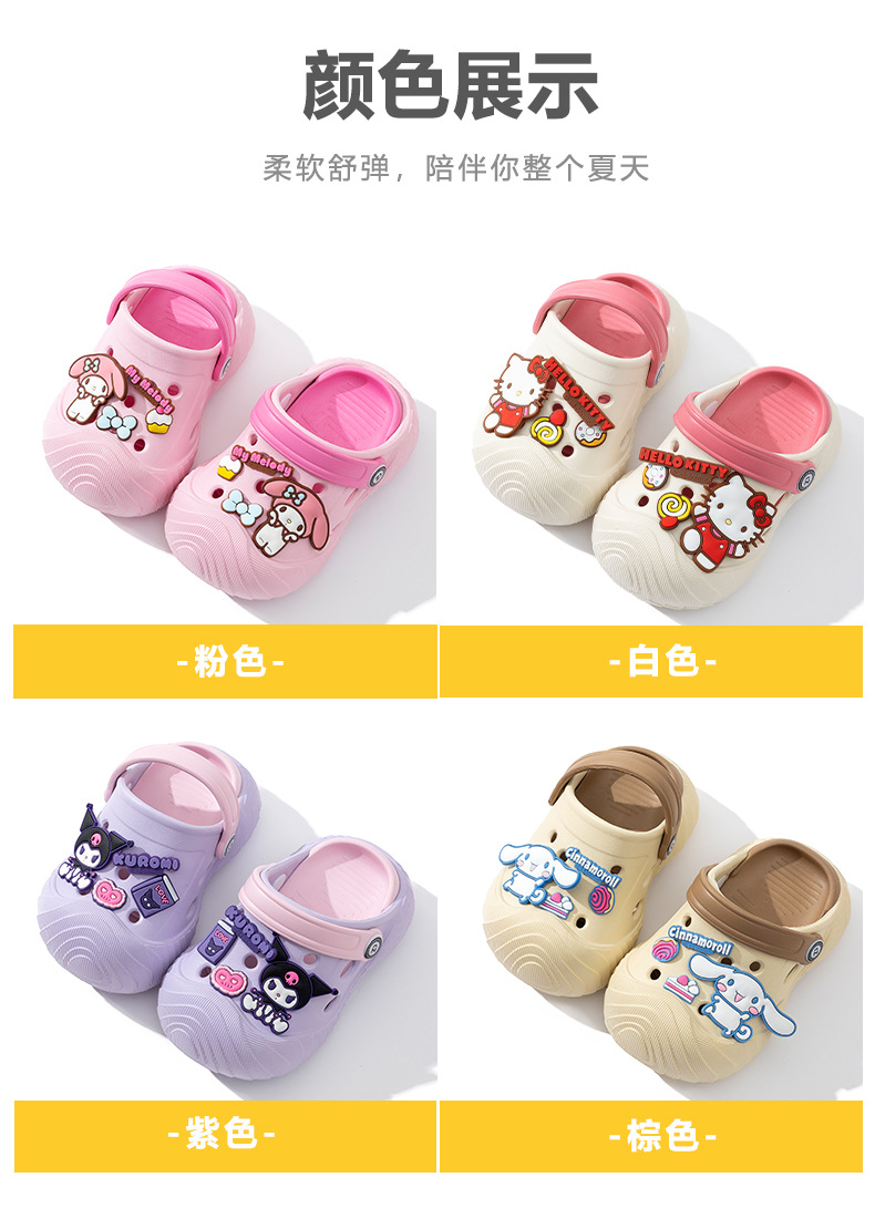국경 간 산리오 어린이 슬리퍼 구멍 미끄럼 방지 소녀 해변 신발 부드러운 바닥 통기성 귀여운 만화 바오터우 샌들스토어 가기