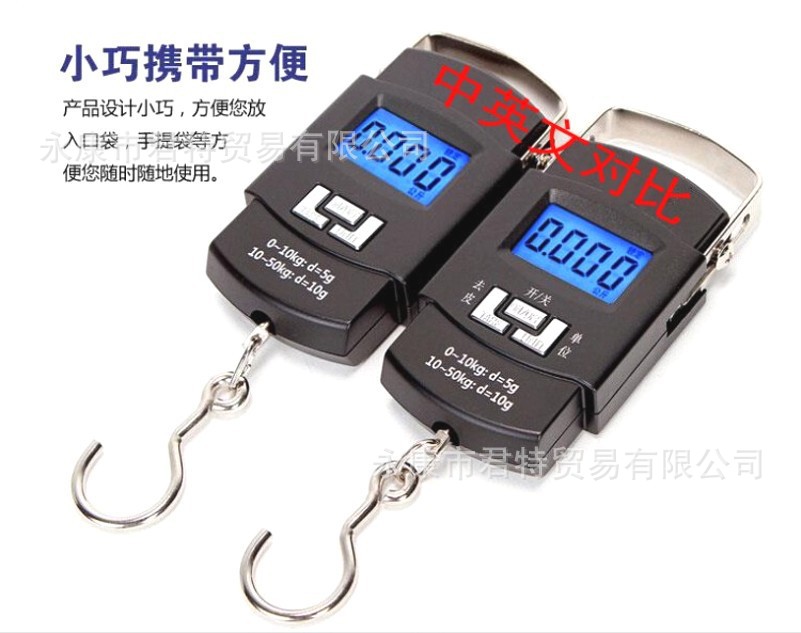 국경 간 A08 휴대용 규모 텔레스코픽 후크 규모 휴대용 전자 스케일 후크 스케일 수하물 가늠자 50kg 물고기 후크 규모 야외