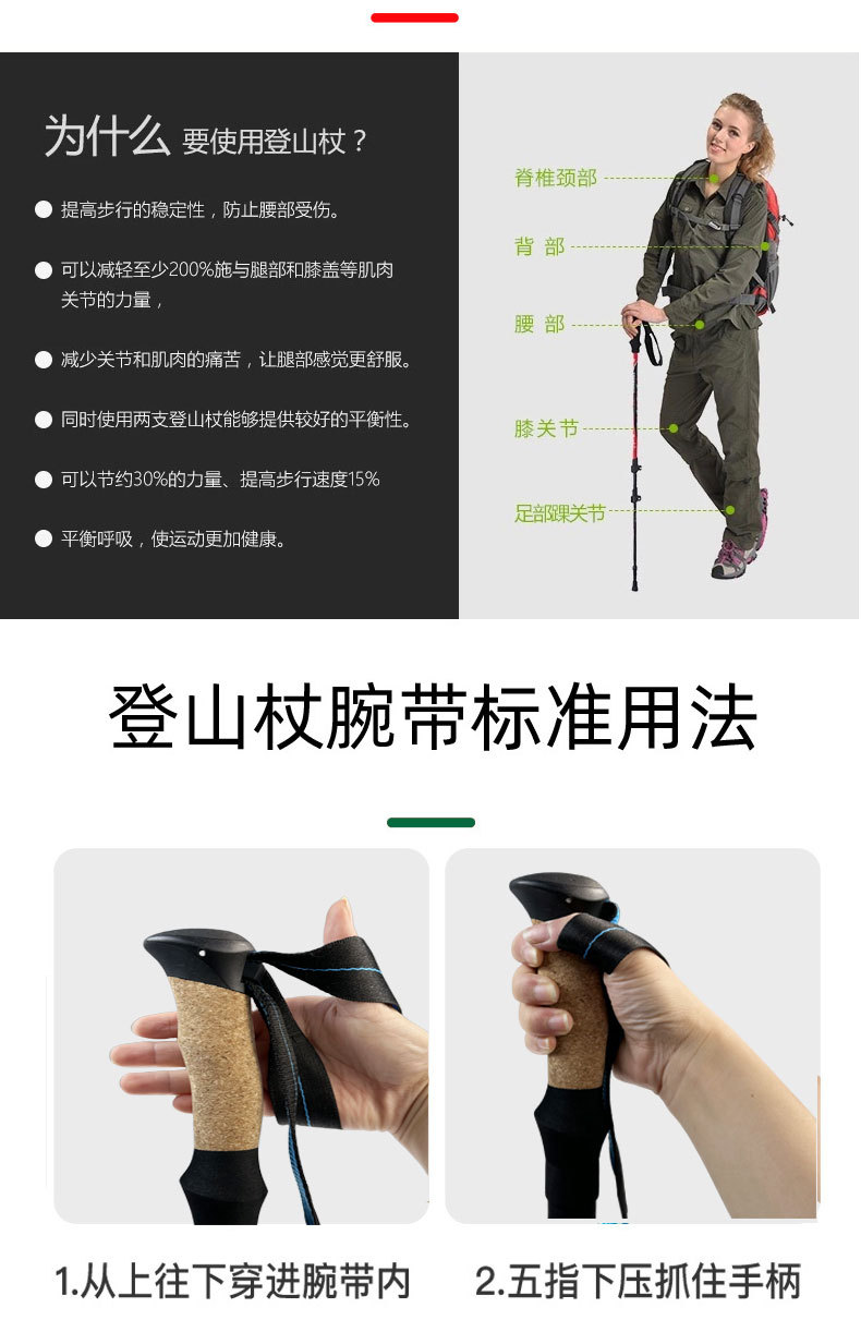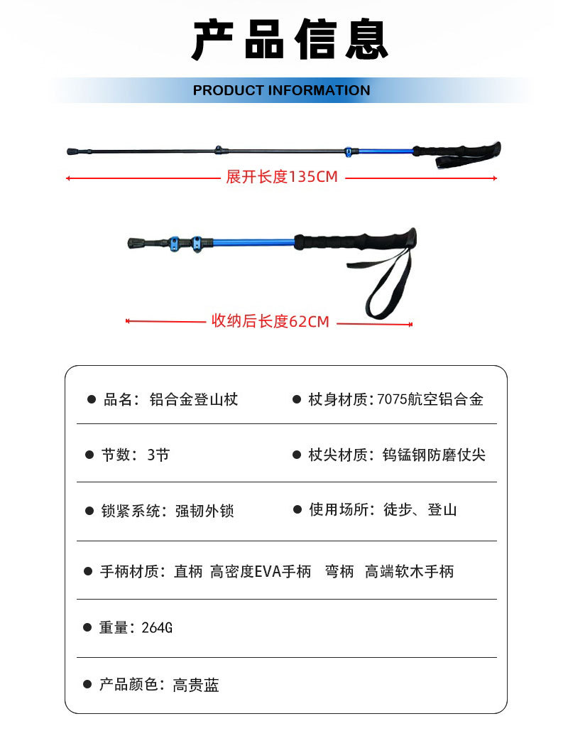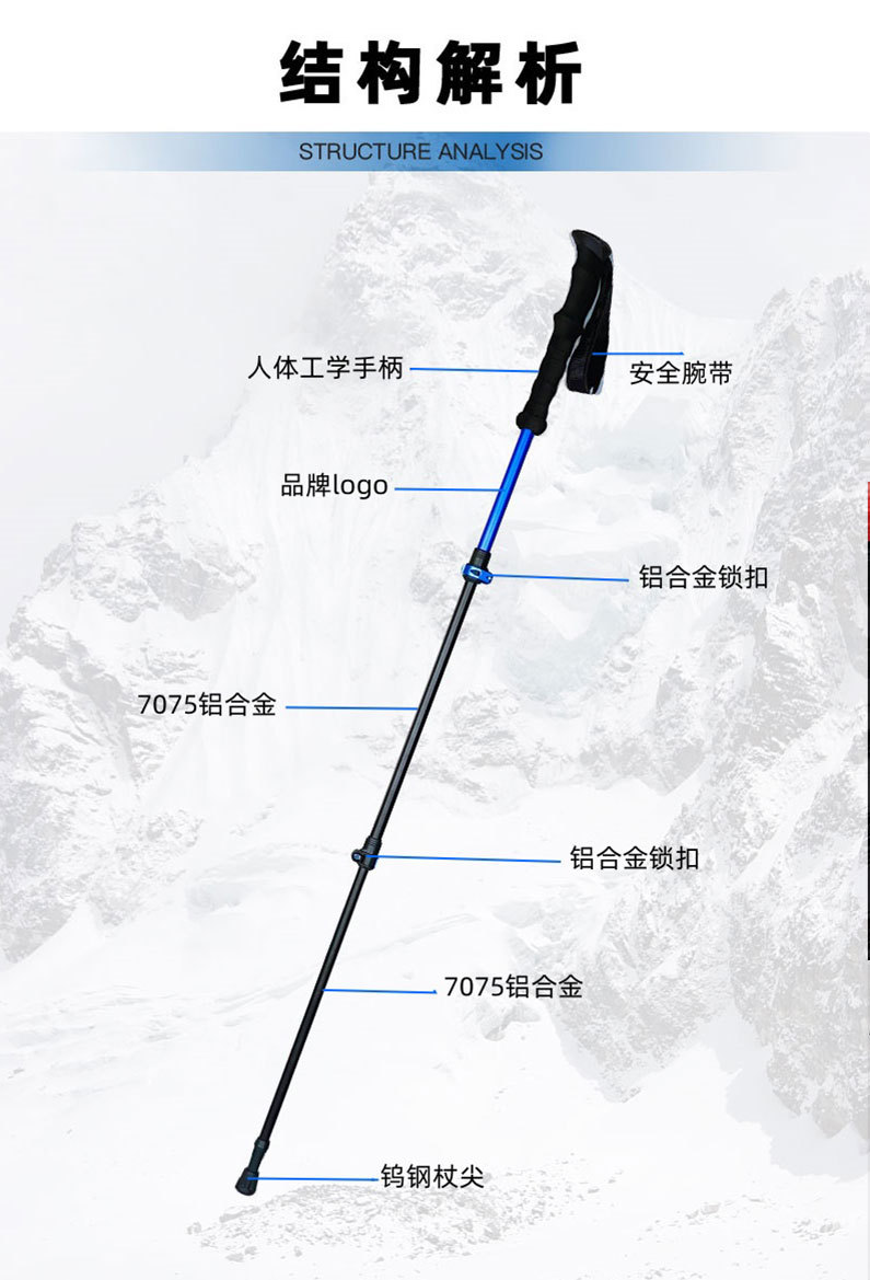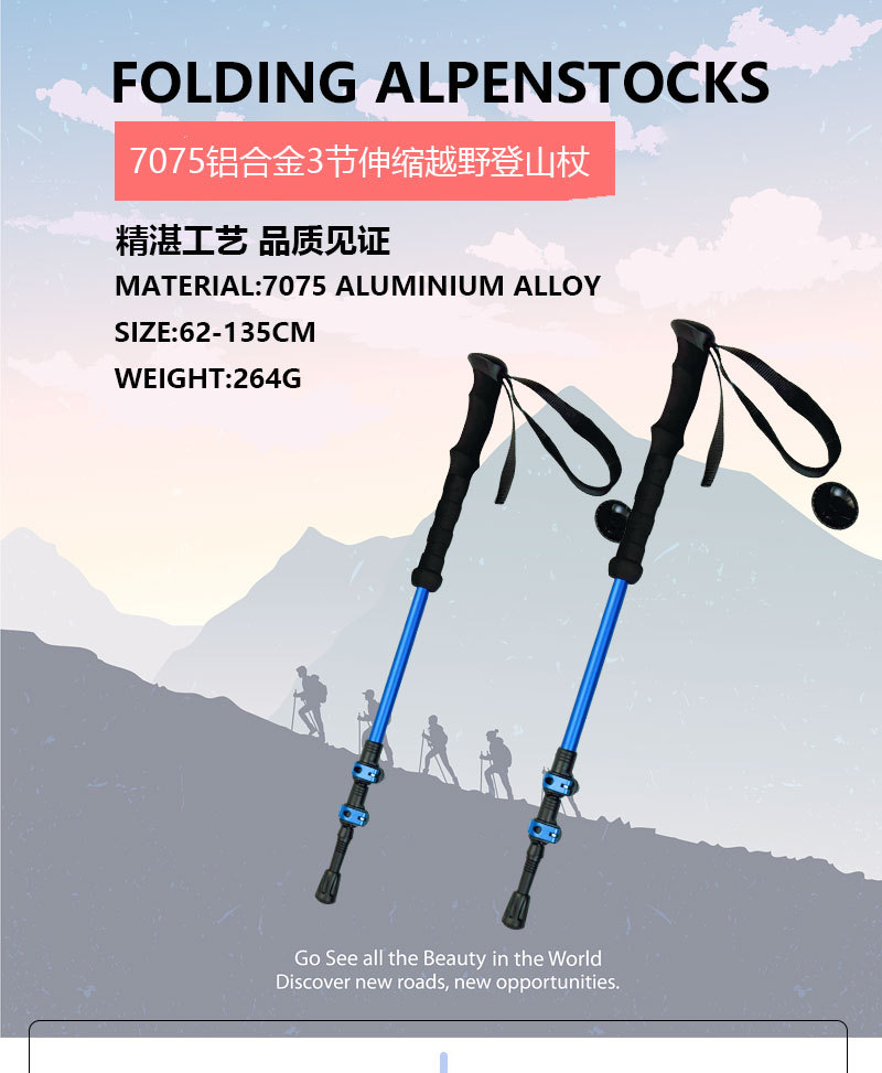 맞춤형 초경량 알루미늄 합금 7075 트레킹 스틱 외부 잠금 3단 텔레스코픽 스틱 야외 하이킹 및 등산 트레킹 스틱