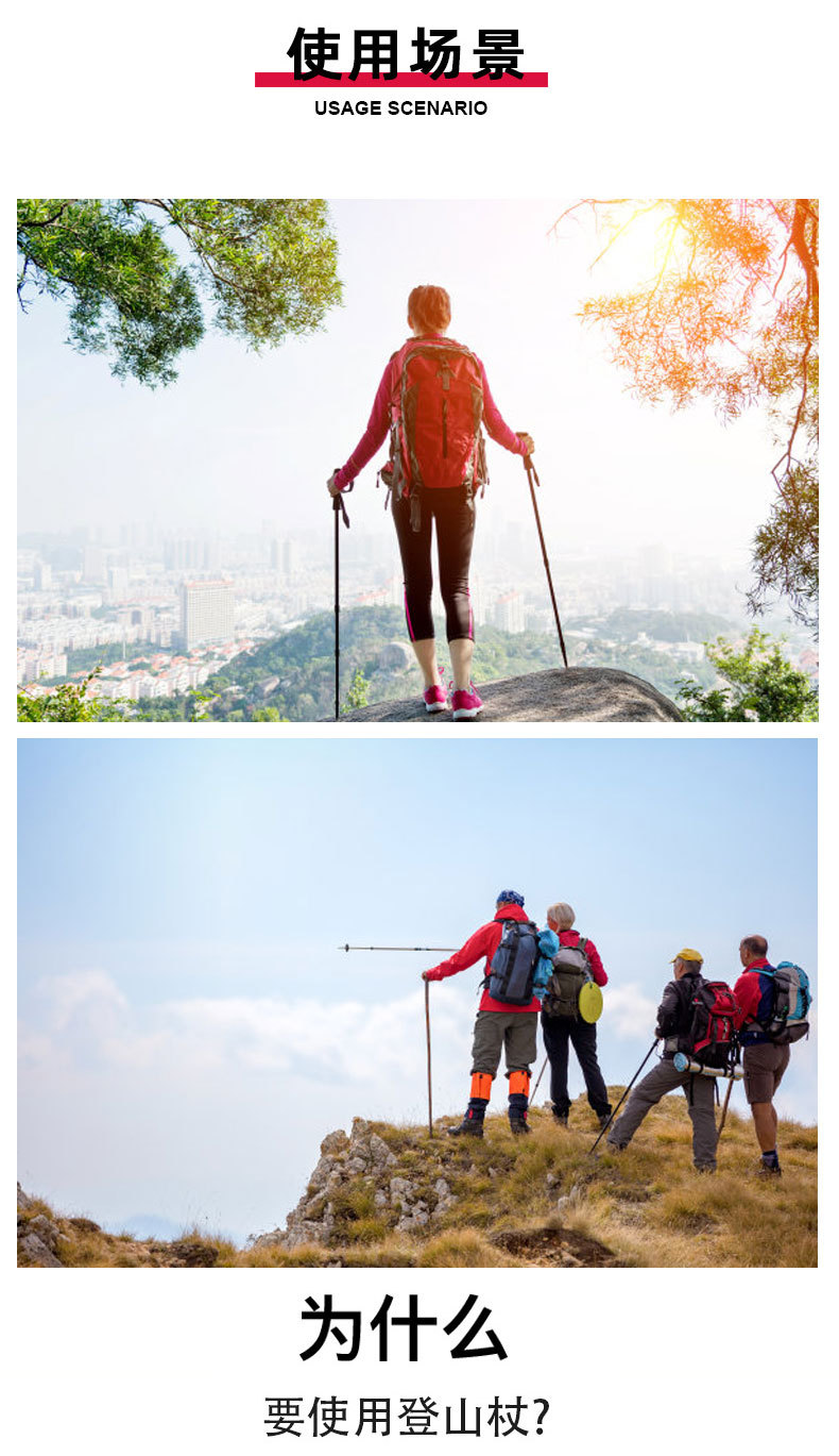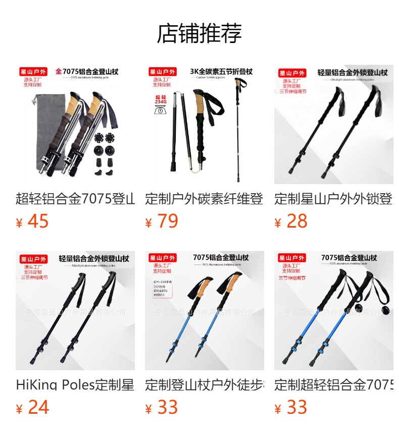 맞춤형 초경량 알루미늄 합금 7075 트레킹 스틱 외부 잠금 3단 텔레스코픽 스틱 야외 하이킹 및 등산 트레킹 스틱스토어 가기
