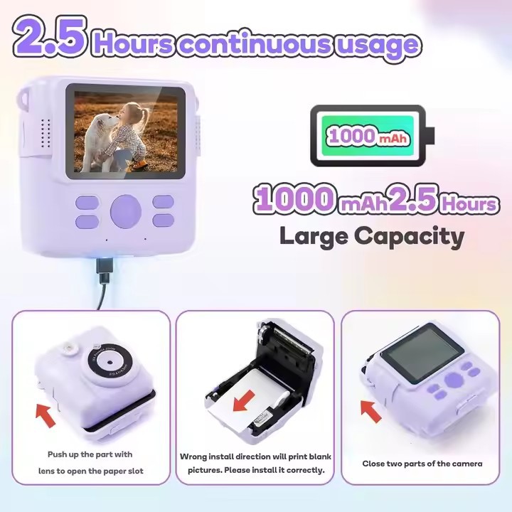 어린이 카메라 열 인쇄 카메라 만화 스마트 장난감 DIY HD 미니 SLR 선물