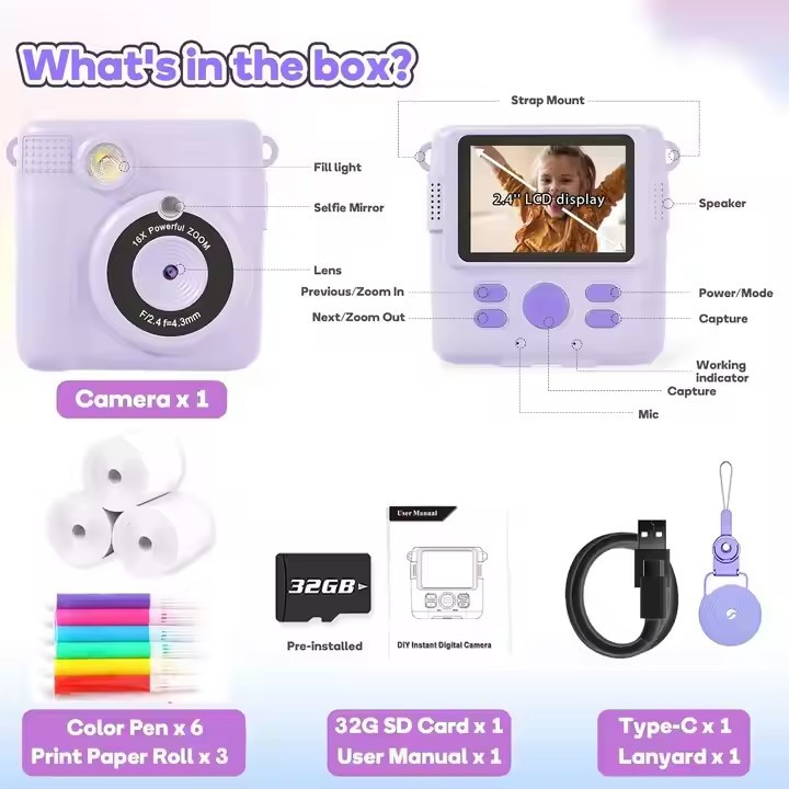 • 보라색, 32G 메모리 + 컬러 펜 6개 + 수하물 포함