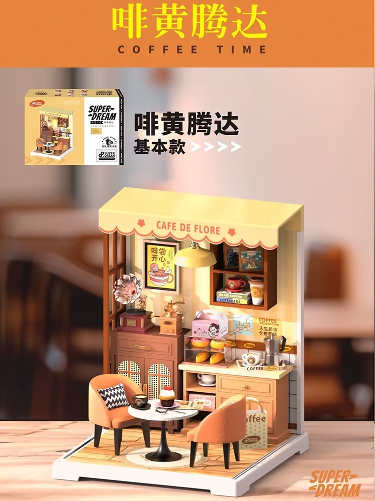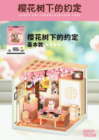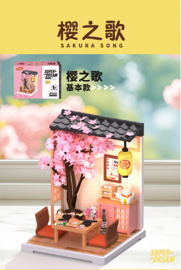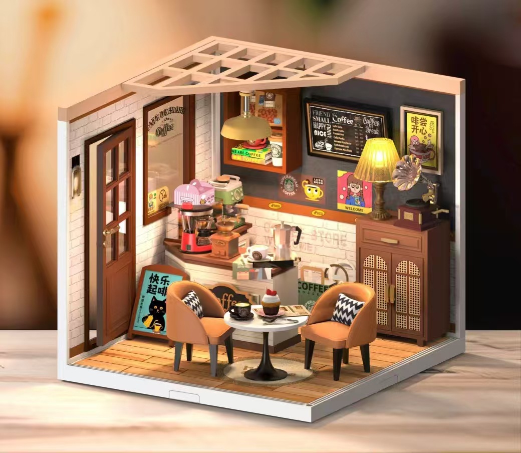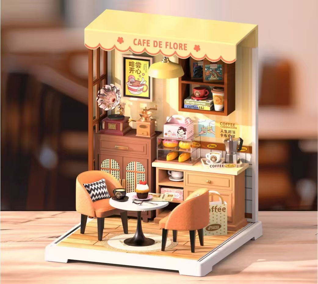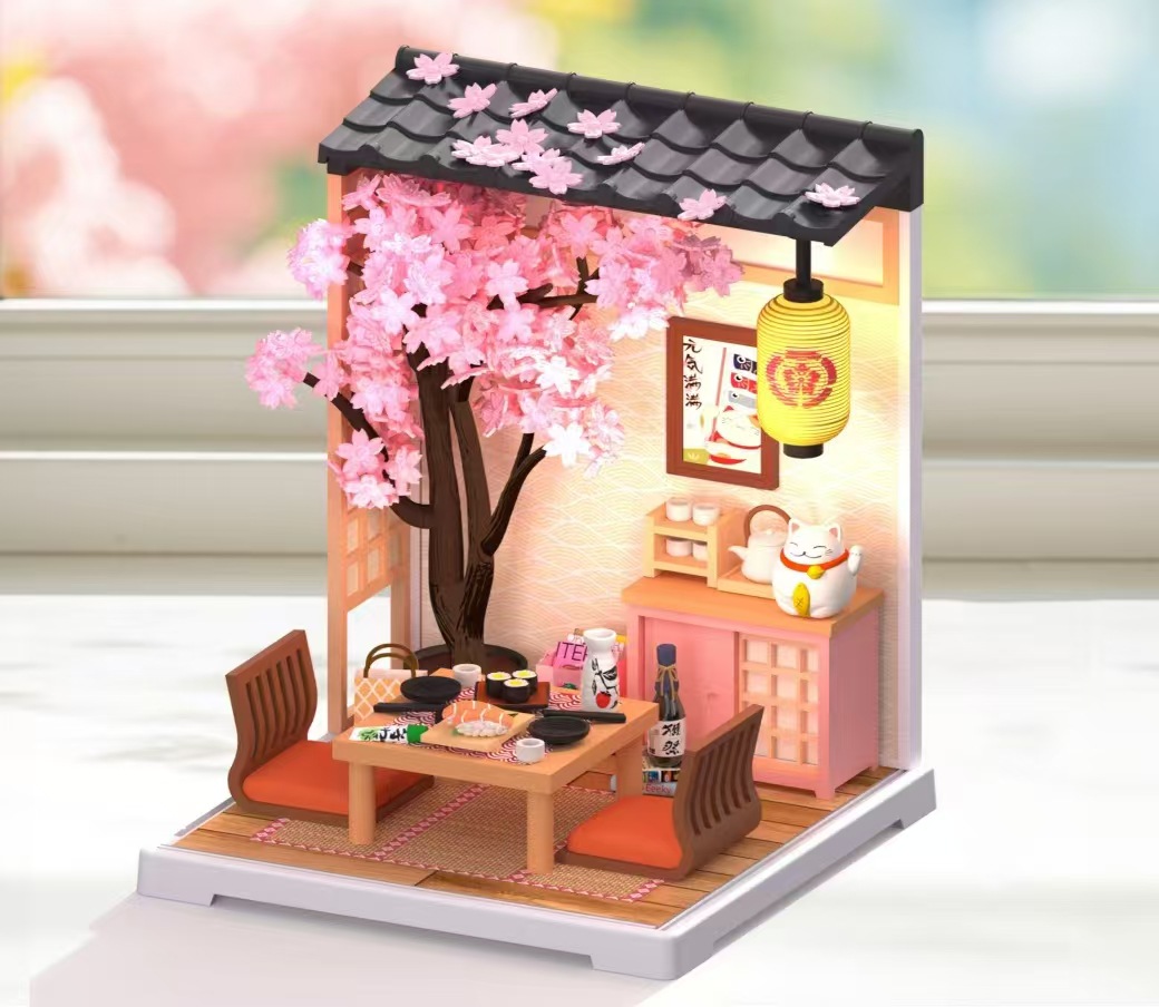 Diy 커피 숍 벚꽃 나무 손으로 조립 된 미니어처 하우스 모델 장난감 크리 에이 티브 생일 선물