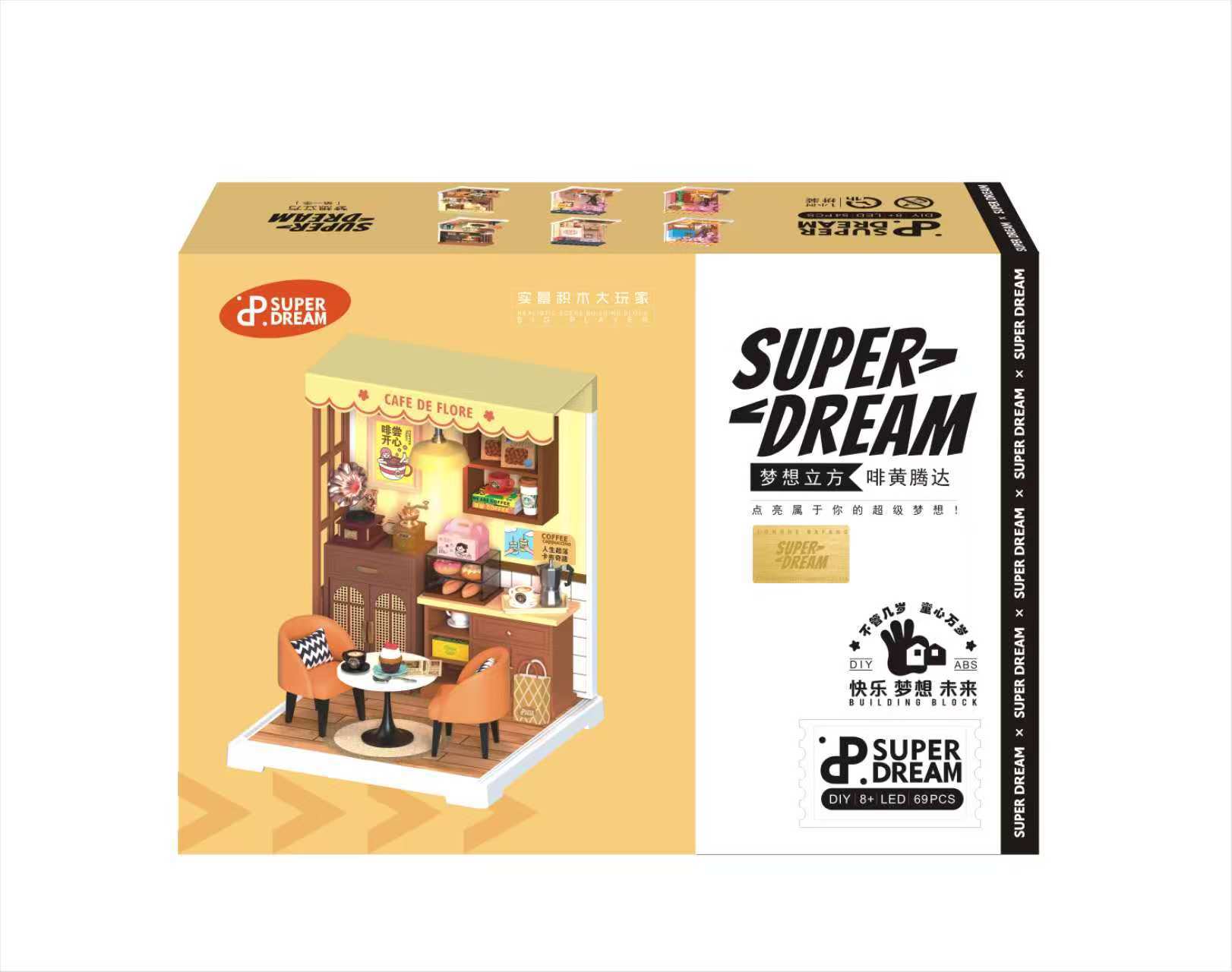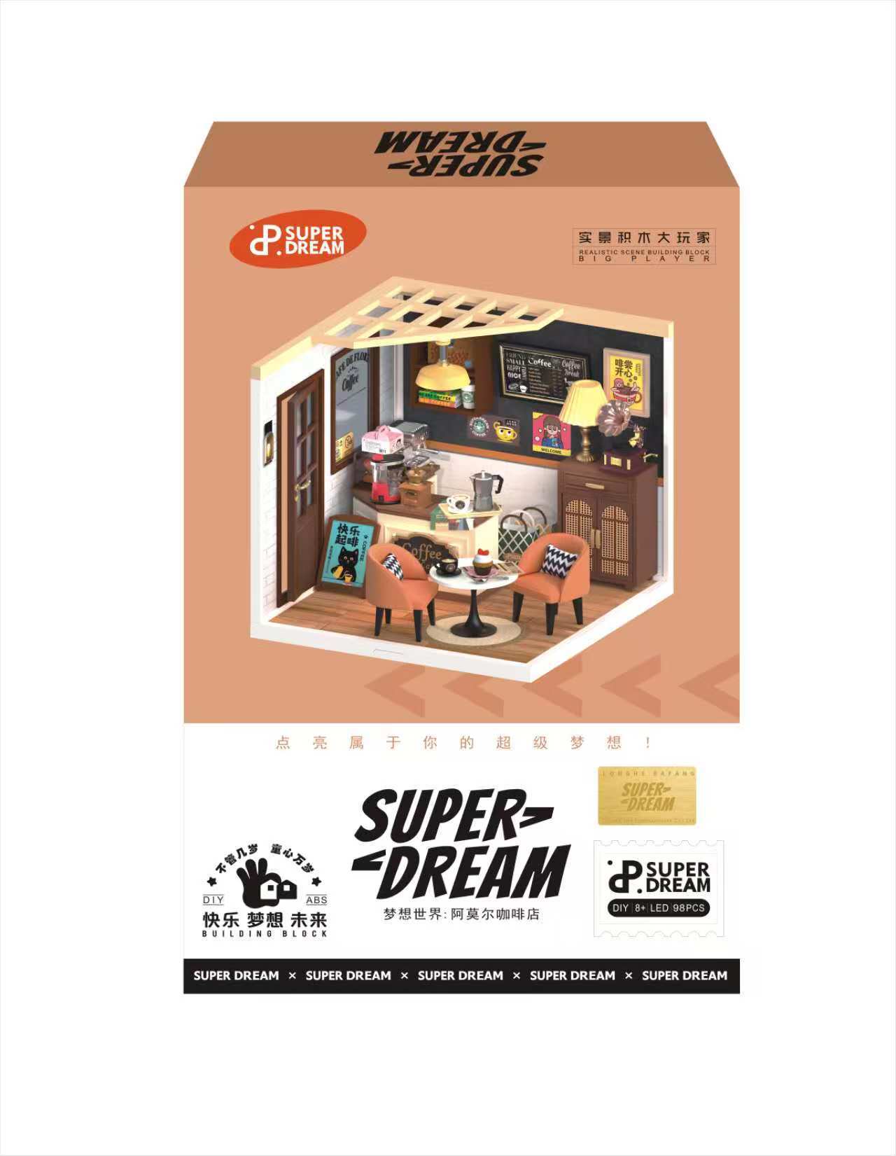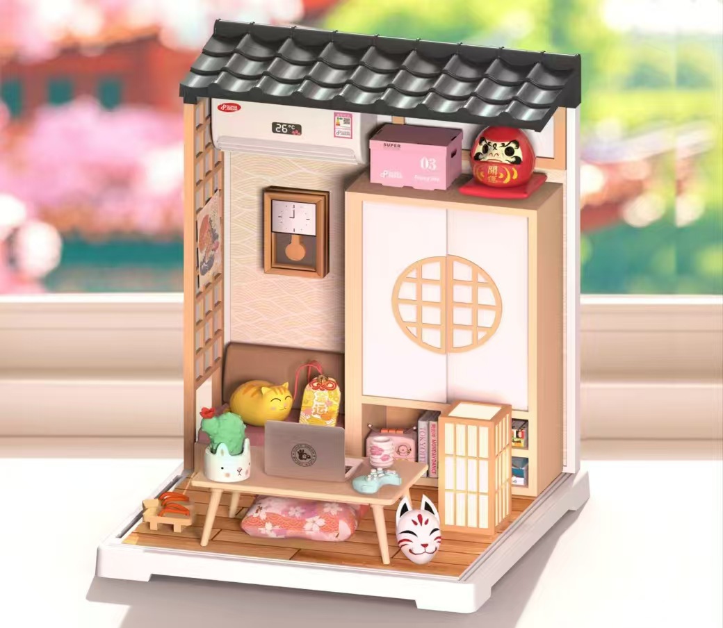 Diy 커피 숍 벚꽃 나무 손으로 조립 된 미니어처 하우스 모델 장난감 크리 에이 티브 생일 선물