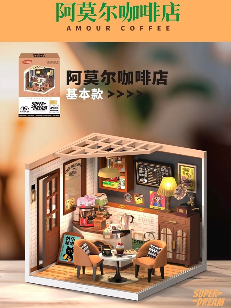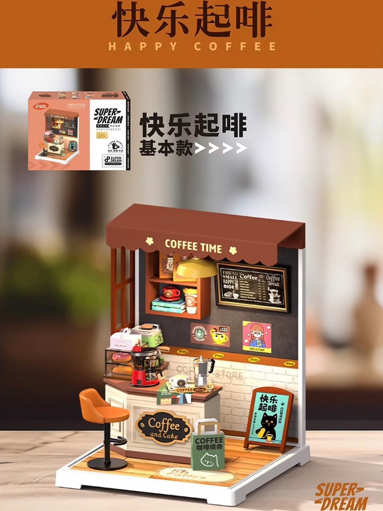 Diy 커피 숍 벚꽃 나무 손으로 조립 된 미니어처 하우스 모델 장난감 크리 에이 티브 생일 선물스토어 가기