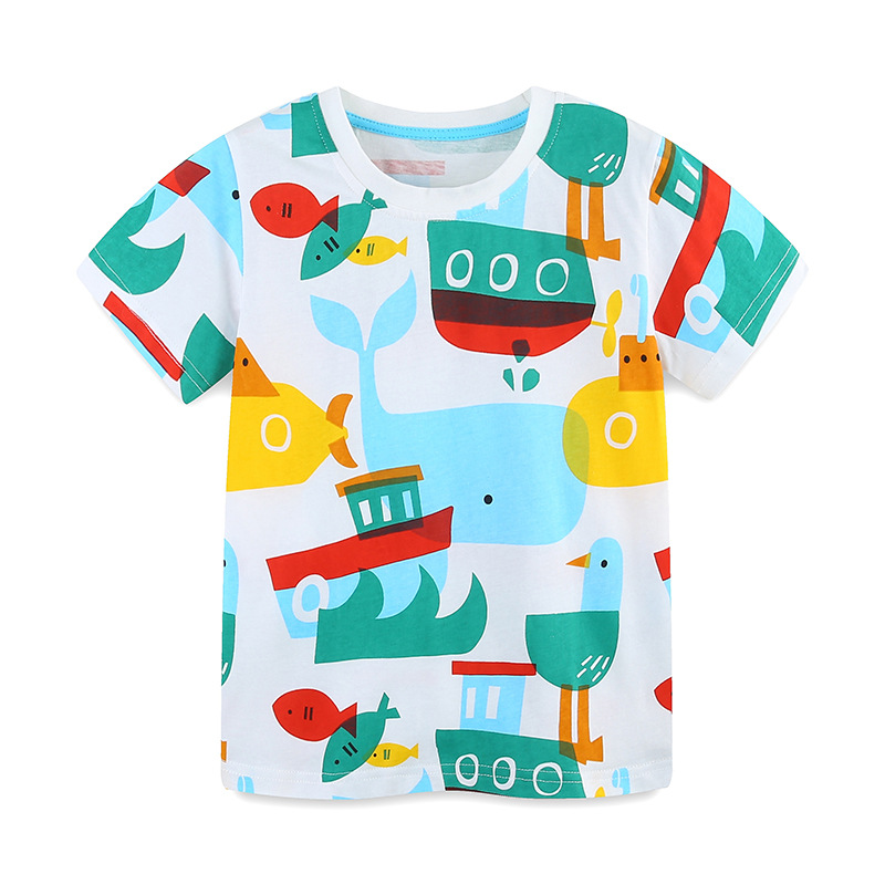 여름 새로운 어린이 티셔츠 유럽과 미국 스타일 재미 인쇄 소년 반팔 티셔츠 니트 코튼 라운드 넥 어린이 스웨트 셔츠