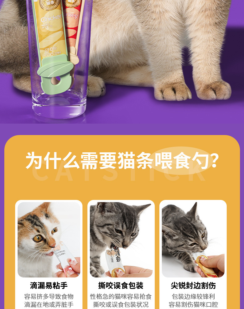 피더 고양이 스트립 고양이 아티팩트 스퀴즈 스낵 애완 동물 특수 숟가락 긴 손잡이 숟가락 고기 진흙 애완 동물 고양이 용품스토어 가기