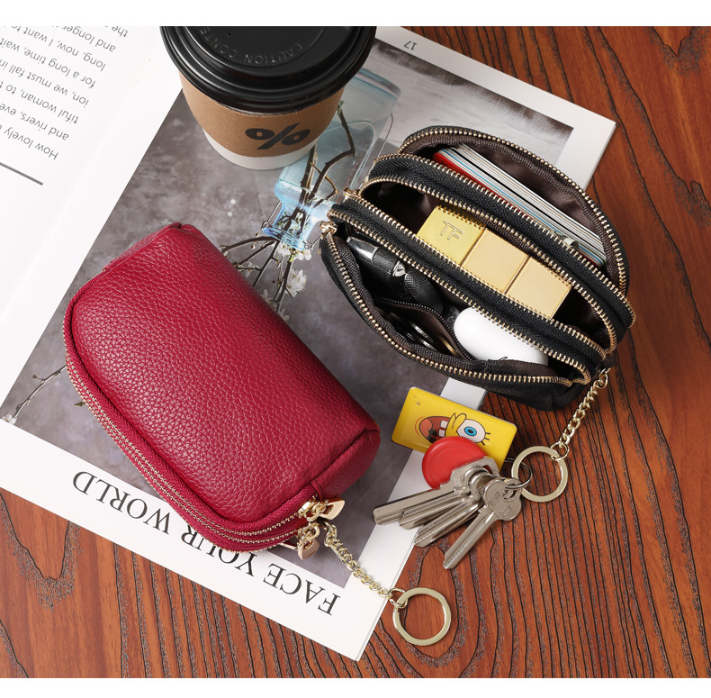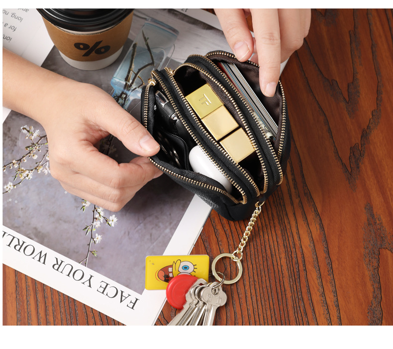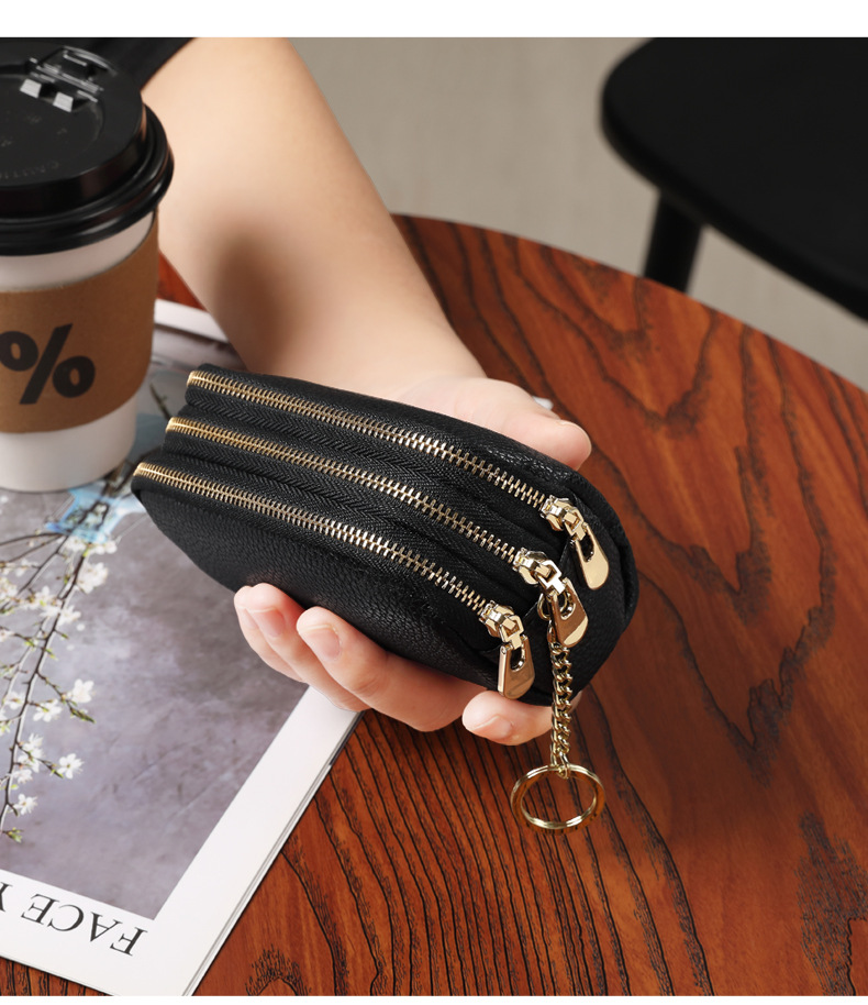 새로운 작은 지갑 3 층 지퍼 지갑 세련된 가방 여성 동전 지갑 새로운 가죽 작은 동전 가방 키