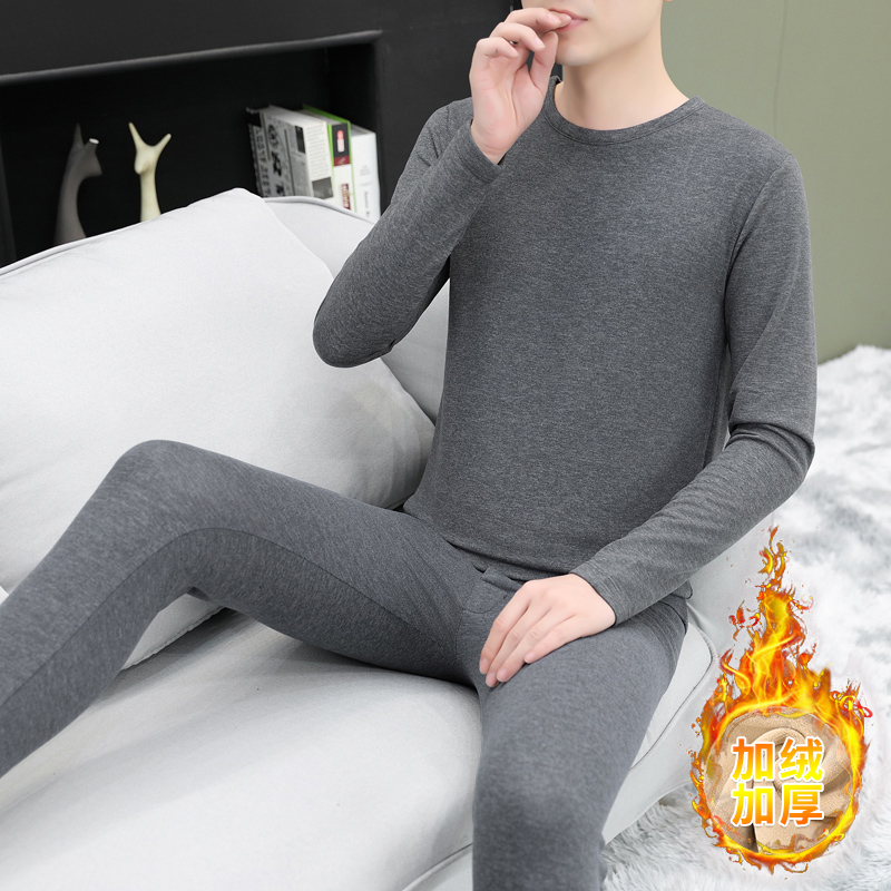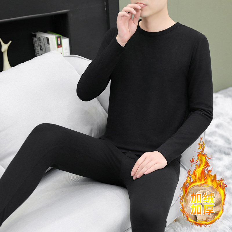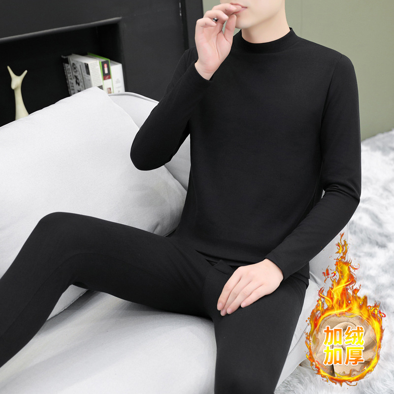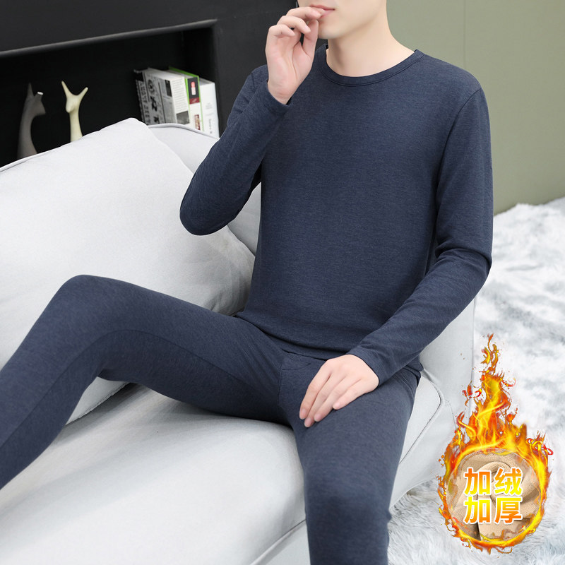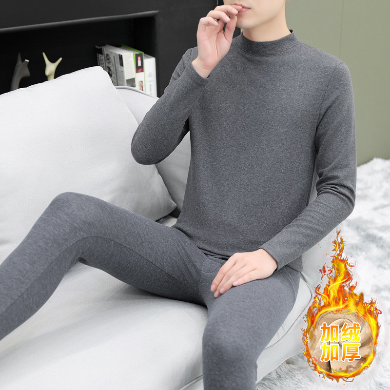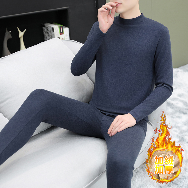 단색 미드 칼라 양모 뽕나무 실크 따뜻한 세트 남성 청소년 가을과 겨울 독일 벨벳 가을 옷 가을 바지 방한 세트스토어 가기