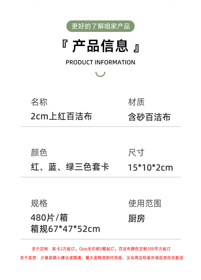 2cm厚上红刷布,加厚百洁布,有很多种质量,本链接上的是1500#的常规质量,规格质量都可以定制,详细咨询客服。
