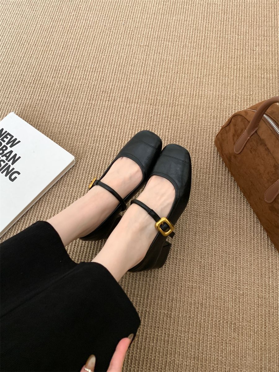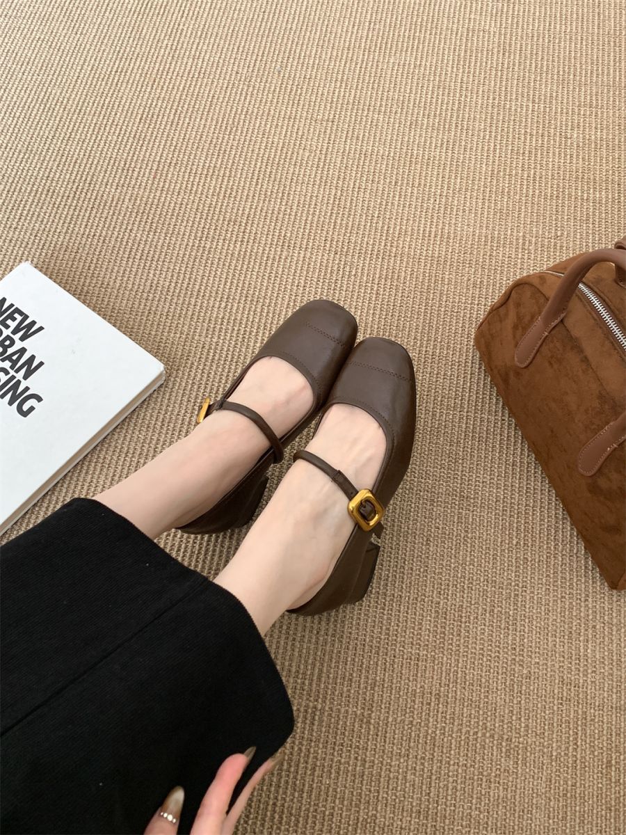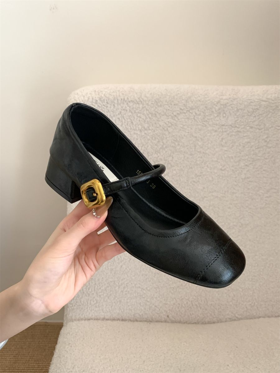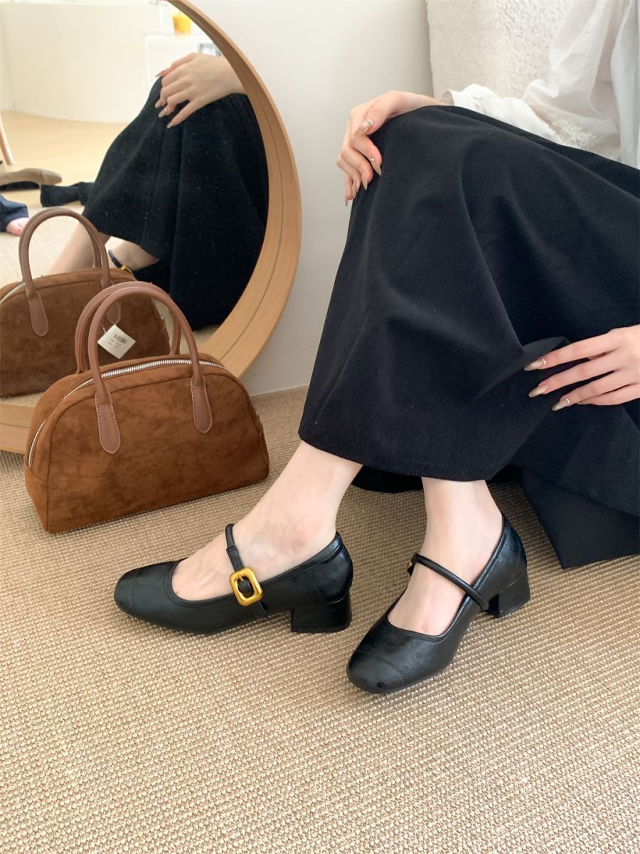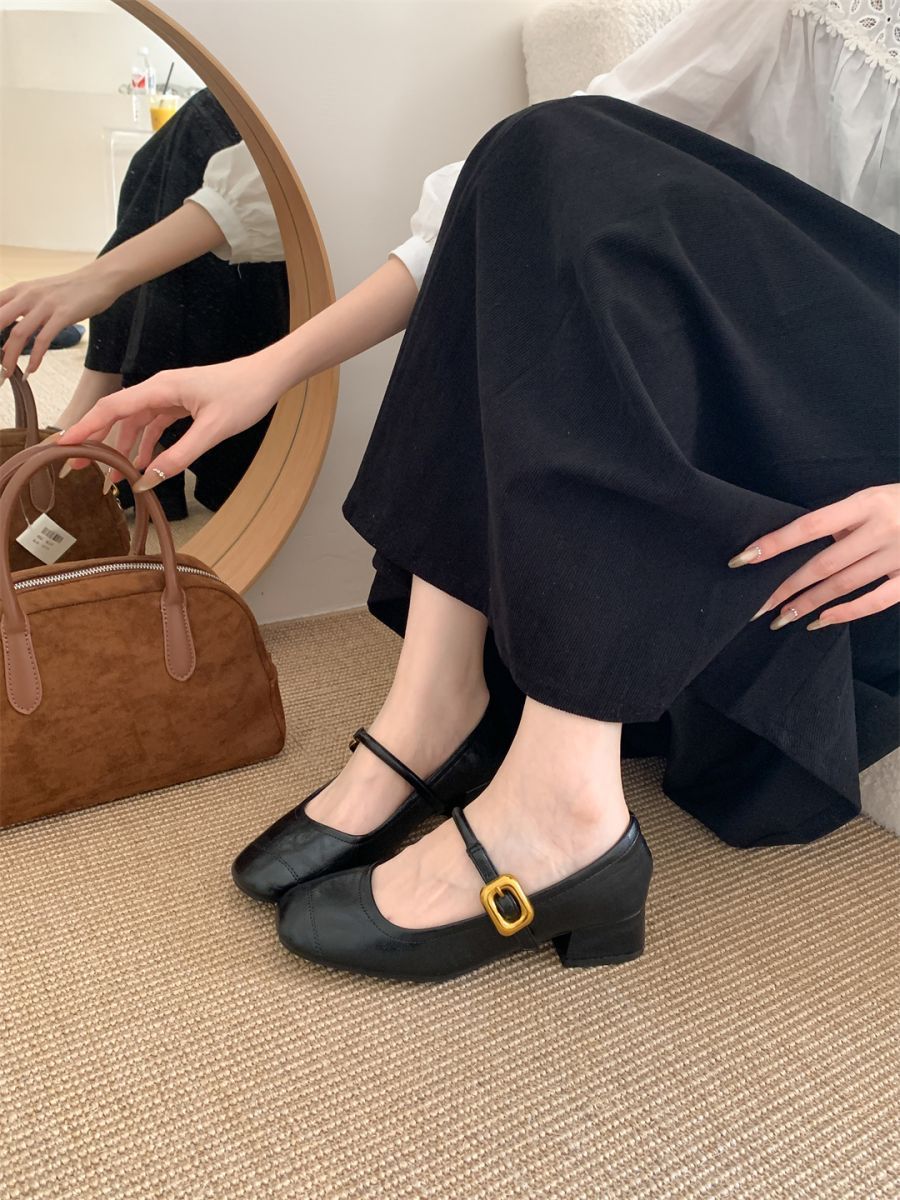 얕은 입 싱글 레이어 신발 여성 가을 새로운 패션 틈새 올 매치 한국식 부드러운 밑창 가죽 신발 미드 힐 메리 제인 신발스토어 가기