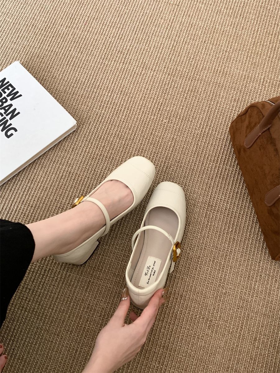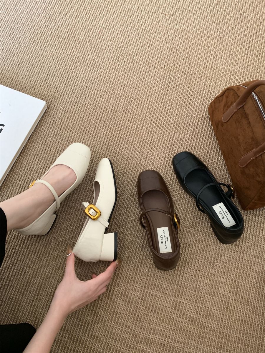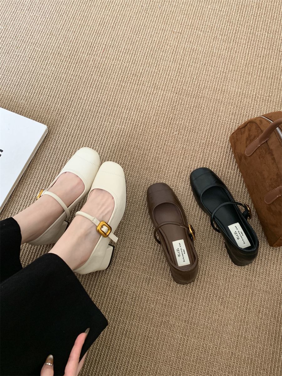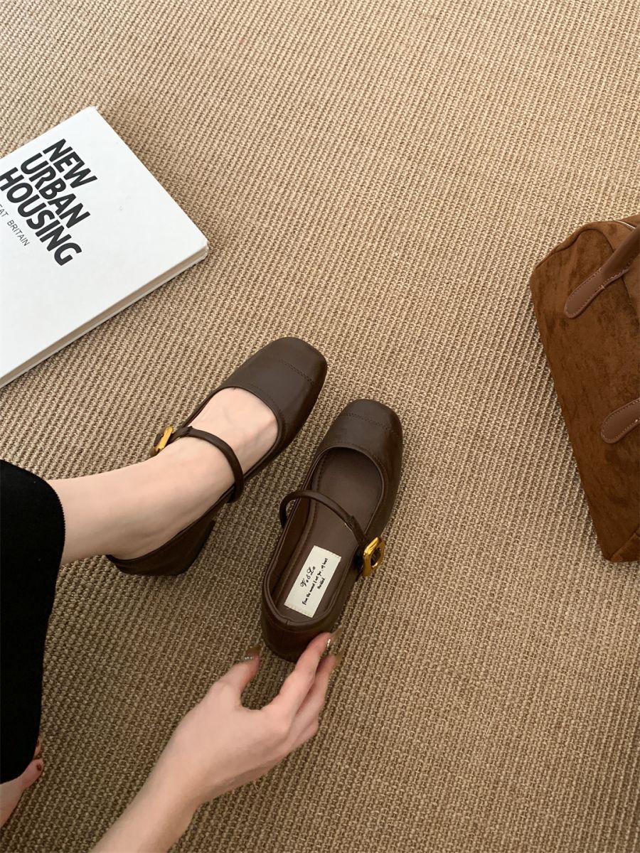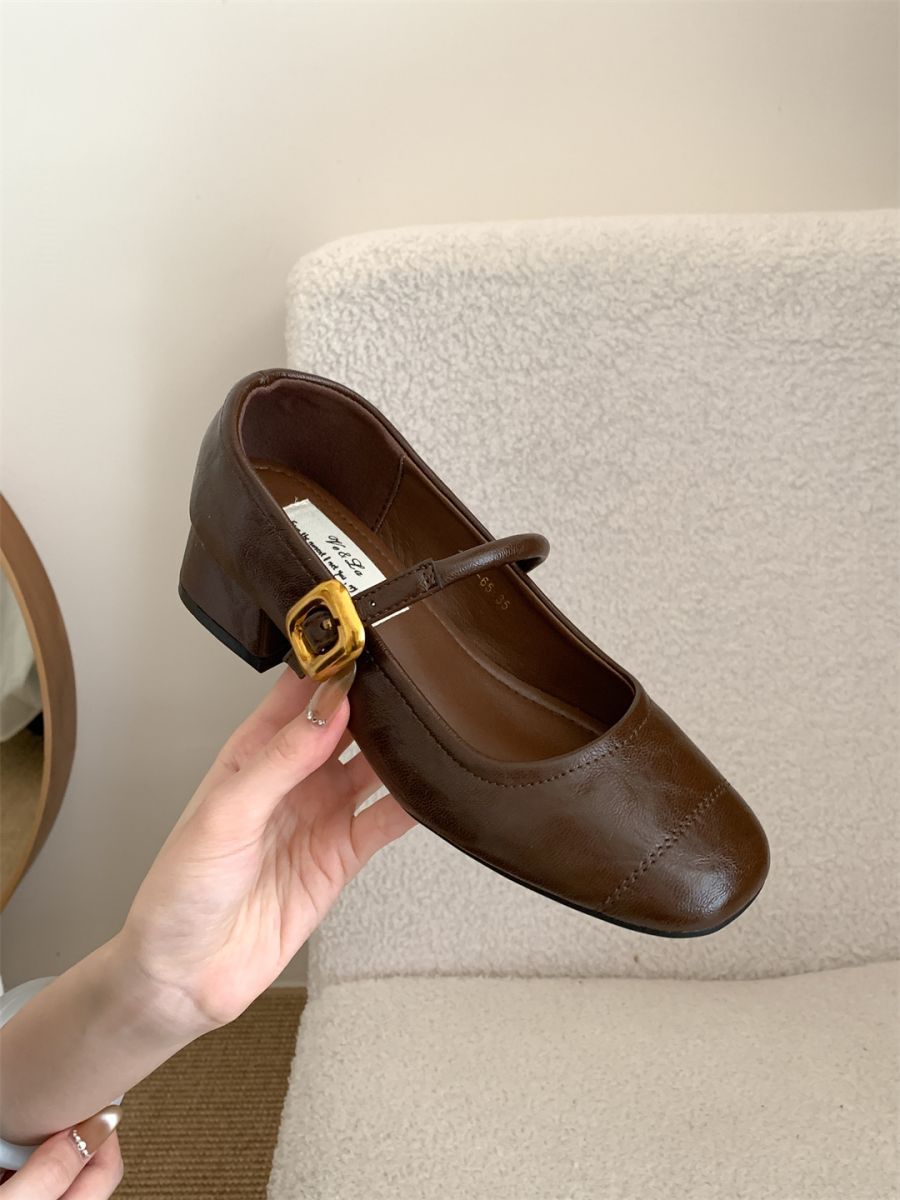 얕은 입 싱글 레이어 신발 여성 가을 새로운 패션 틈새 올 매치 한국식 부드러운 밑창 가죽 신발 미드 힐 메리 제인 신발스토어 가기