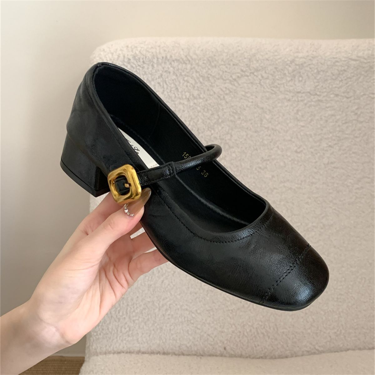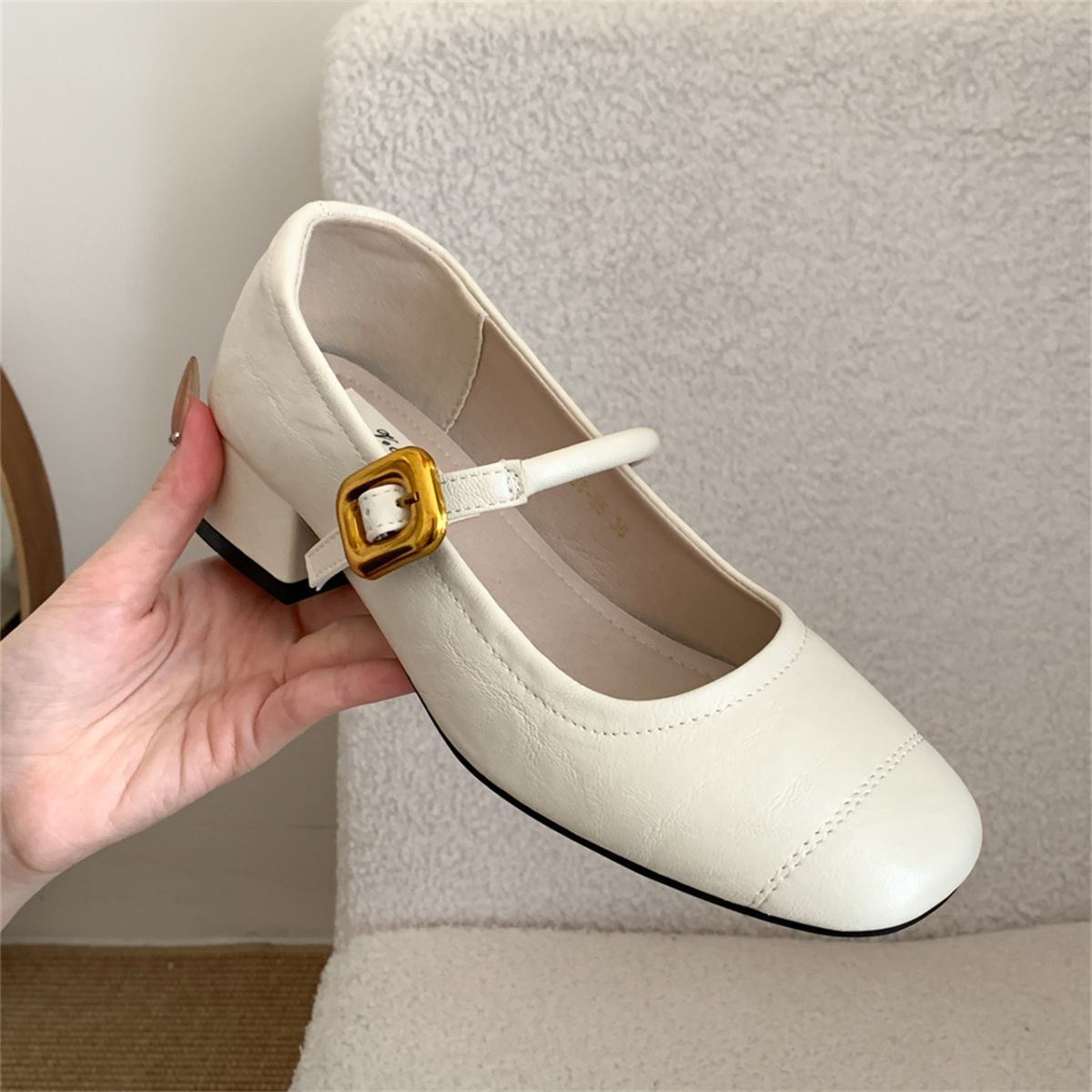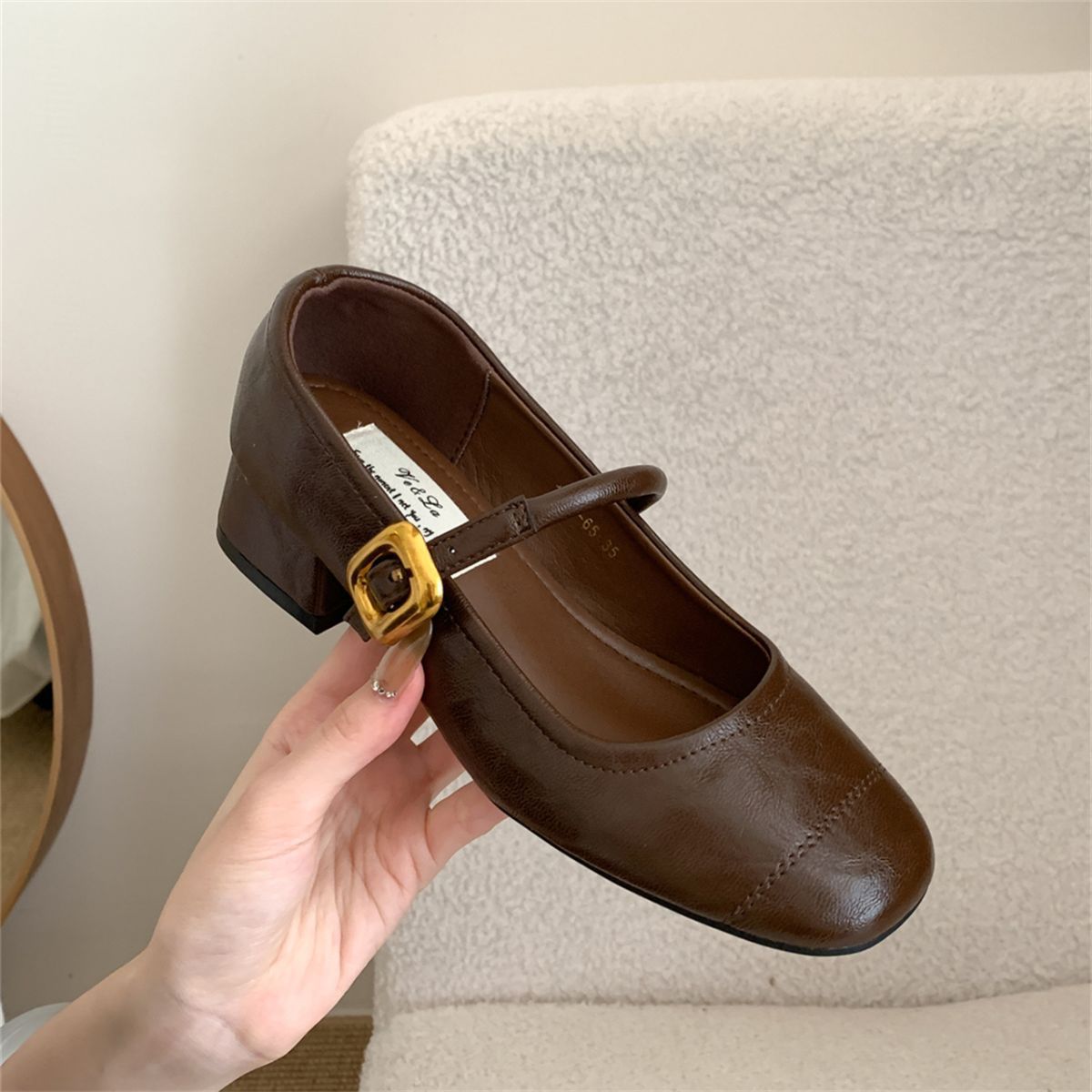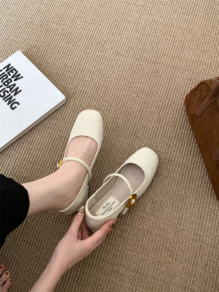 얕은 입 싱글 레이어 신발 여성 가을 새로운 패션 틈새 올 매치 한국식 부드러운 밑창 가죽 신발 미드 힐 메리 제인 신발스토어 가기