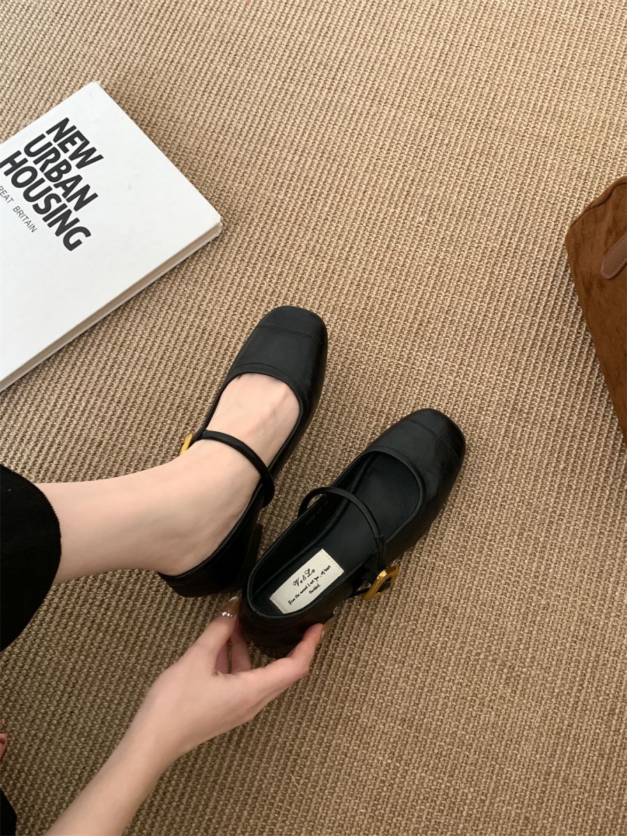 얕은 입 싱글 레이어 신발 여성 가을 새로운 패션 틈새 올 매치 한국식 부드러운 밑창 가죽 신발 미드 힐 메리 제인 신발