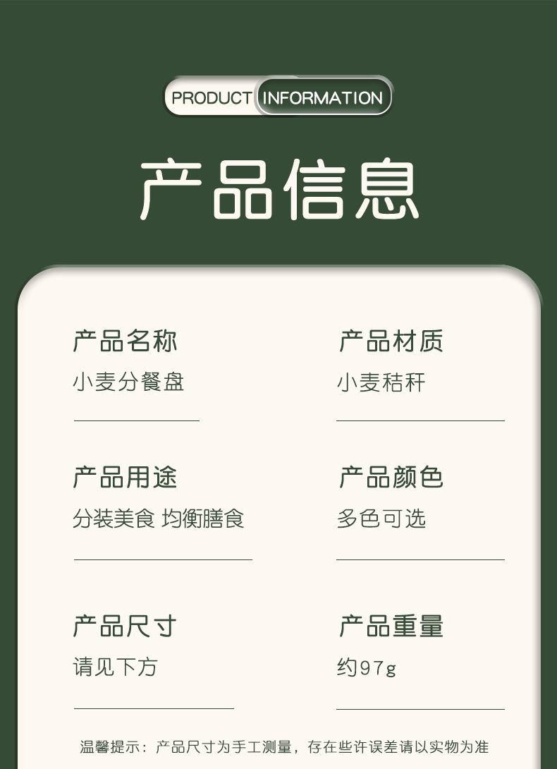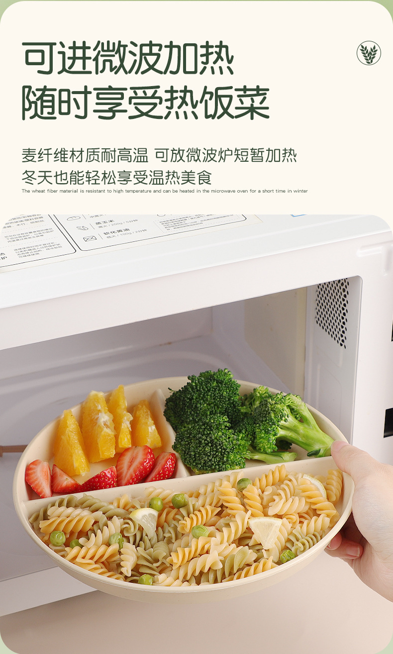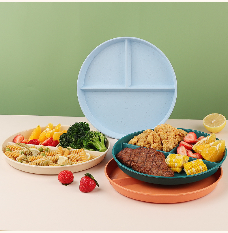 공장 도매 라운드 3 칸 디너 플레이트 디바이더 플레이트 라운드 3 칸 식사 밀 밀짚 가을 가정용 플레이트
